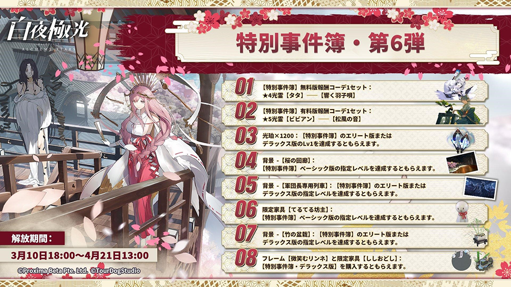 『白夜極光』、新期間限定イベント【紅に雪の散る如く・上】開催!カレン“プレミアムコーデ”初登場!ホワイトデー特別ボーナス配布予定!