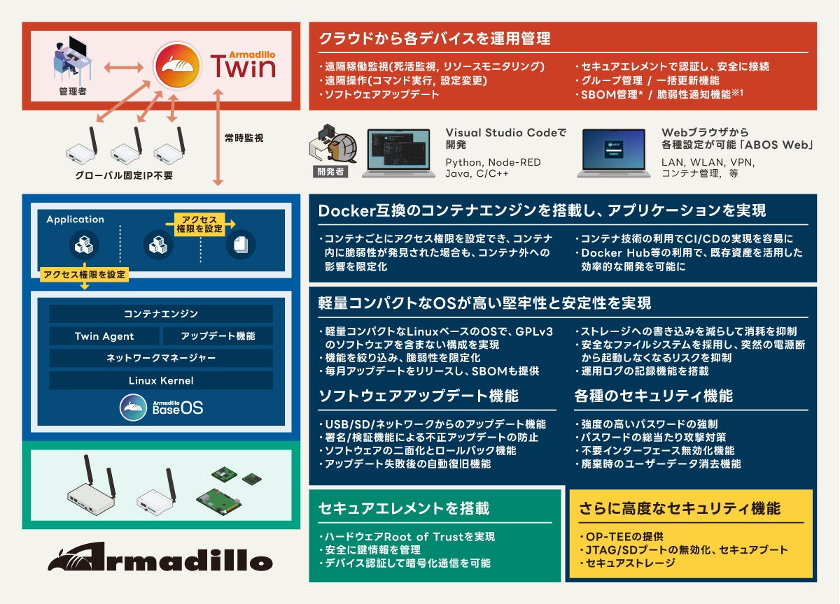 *「Armadillo」は株式会社アットマークテクノの登録商標です。その他本リリースに記載の会社名および商品名は、各社・各団体の商標または登録商標です。TM、®マークは記載していない場合があります。