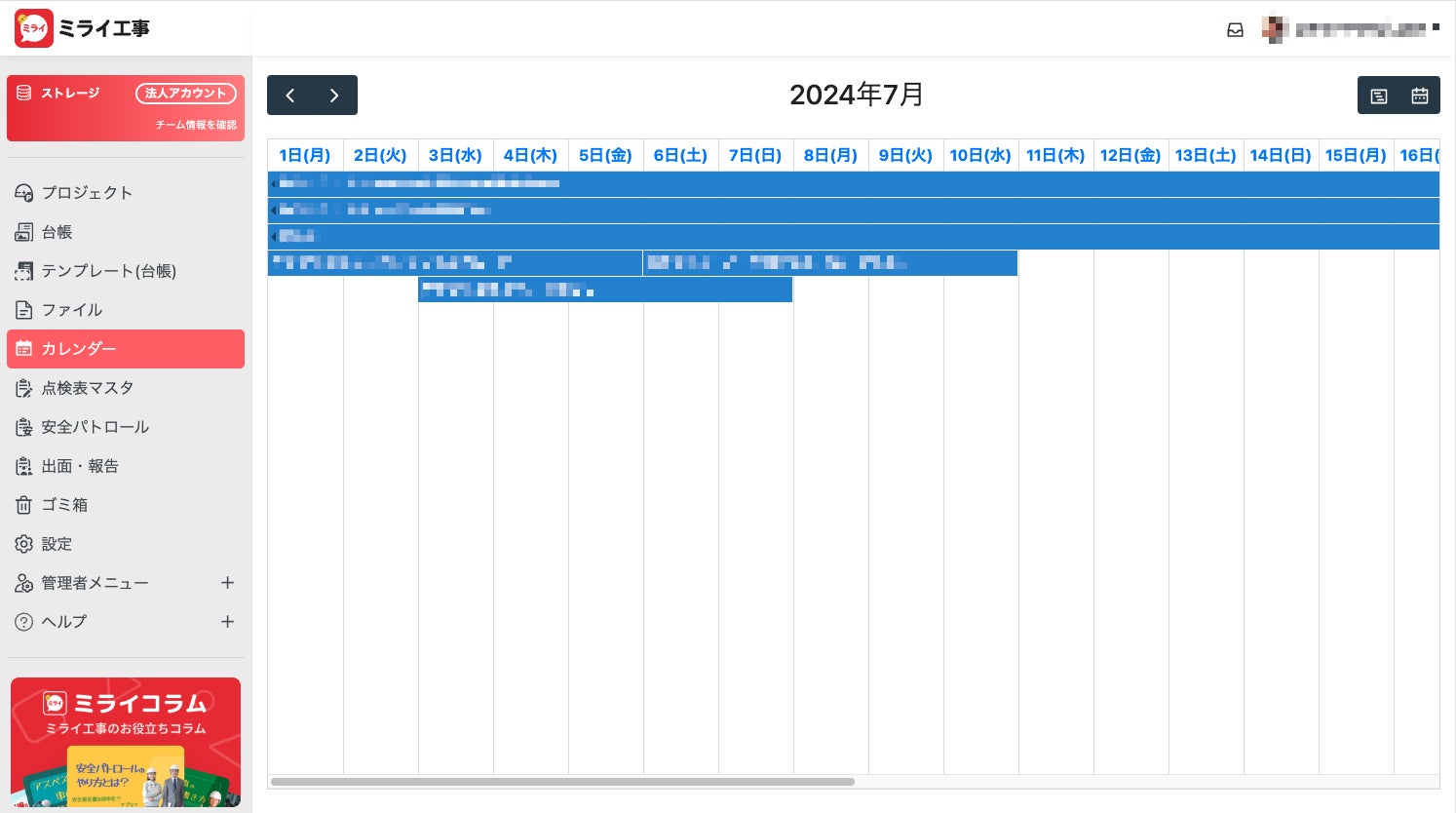 これにより台帳ごとに設定された工期を、チームメンバー全員で一括に共有することができます。