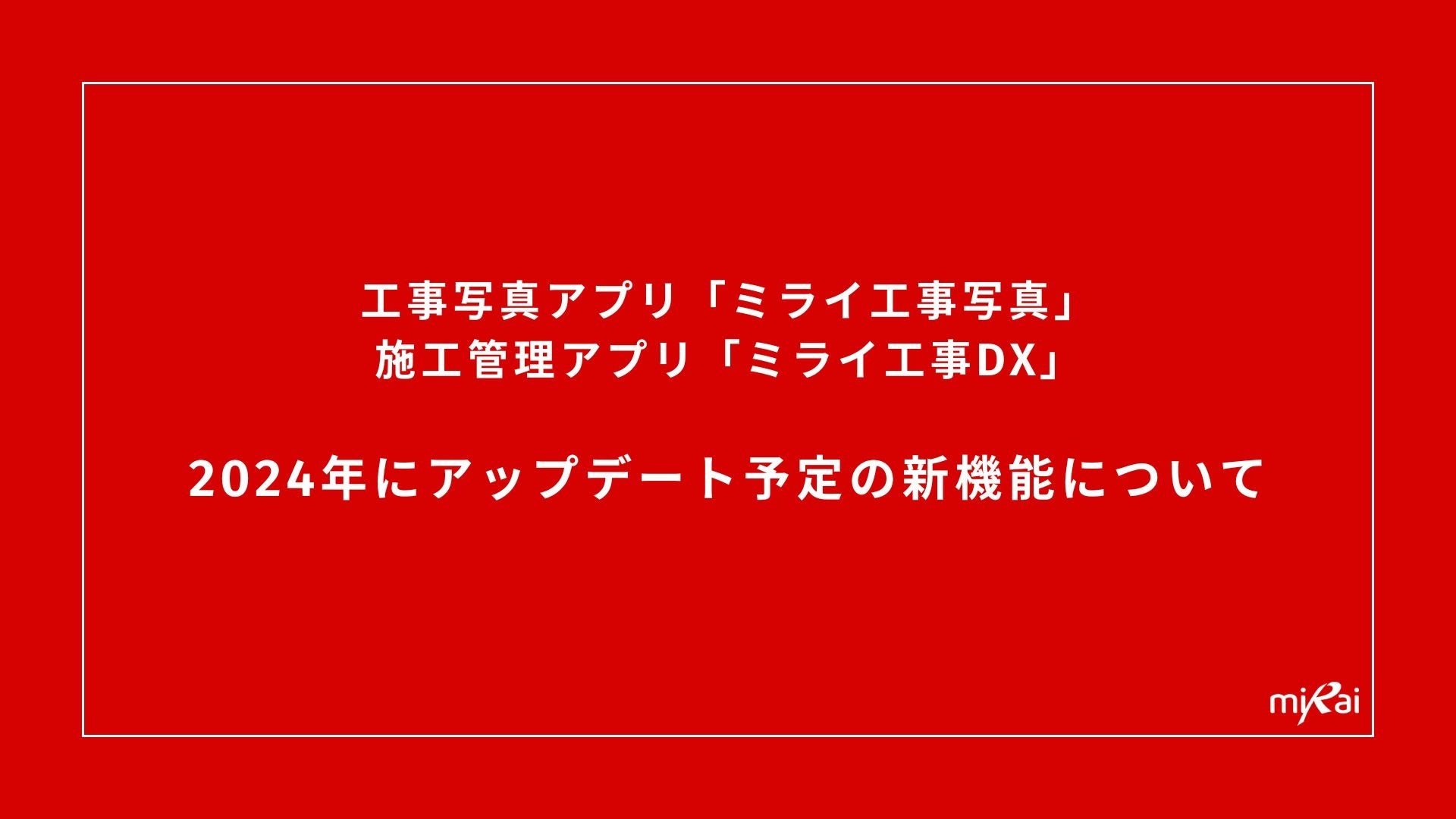 工事写真アプリ「ミライ工事写真」、施工管理アプリ「ミライ工事(管理)DX」、2024年にアップデート予定の新機能について