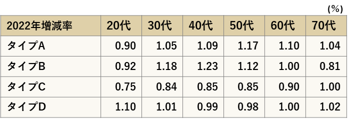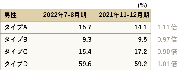 ■男性はタイプAが1.11倍の増加、女性はタイプBが1.12倍増加に
