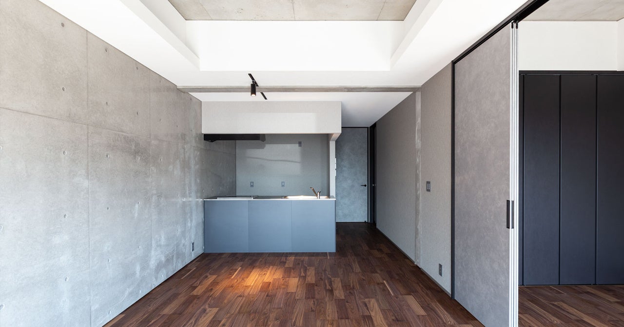 ・天井高2.6m~3mの開放的な空間、打ち放しの壁やグレートーンのインテリアなど心地よさを追及した室内