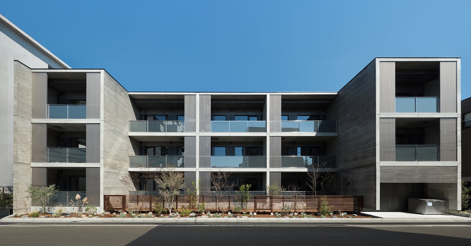 過剰な装飾を排し、シンプルで洗練された日本古来の美を体現したRC造賃貸集合住宅。無機質なコンクリートは杉板型枠により豊かな表情を与えられ、経年変化でさらに味わいを増す。共用ホールや中庭は人と人との交流を促し、建物を介して人々が繋がる場を創出している。住人を優しく包みながら、年月と共に地域の風景と重なり成長していく建築である。