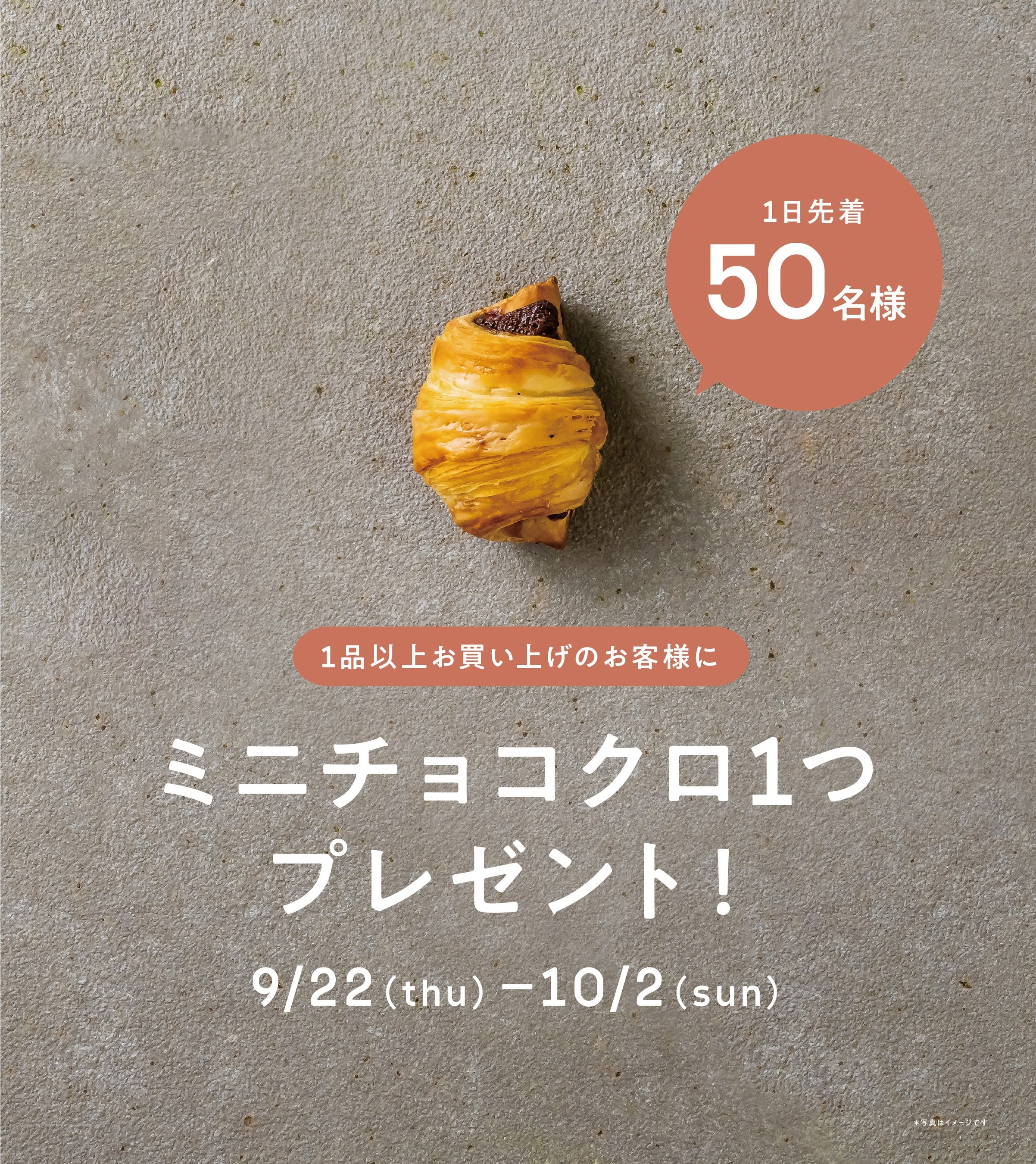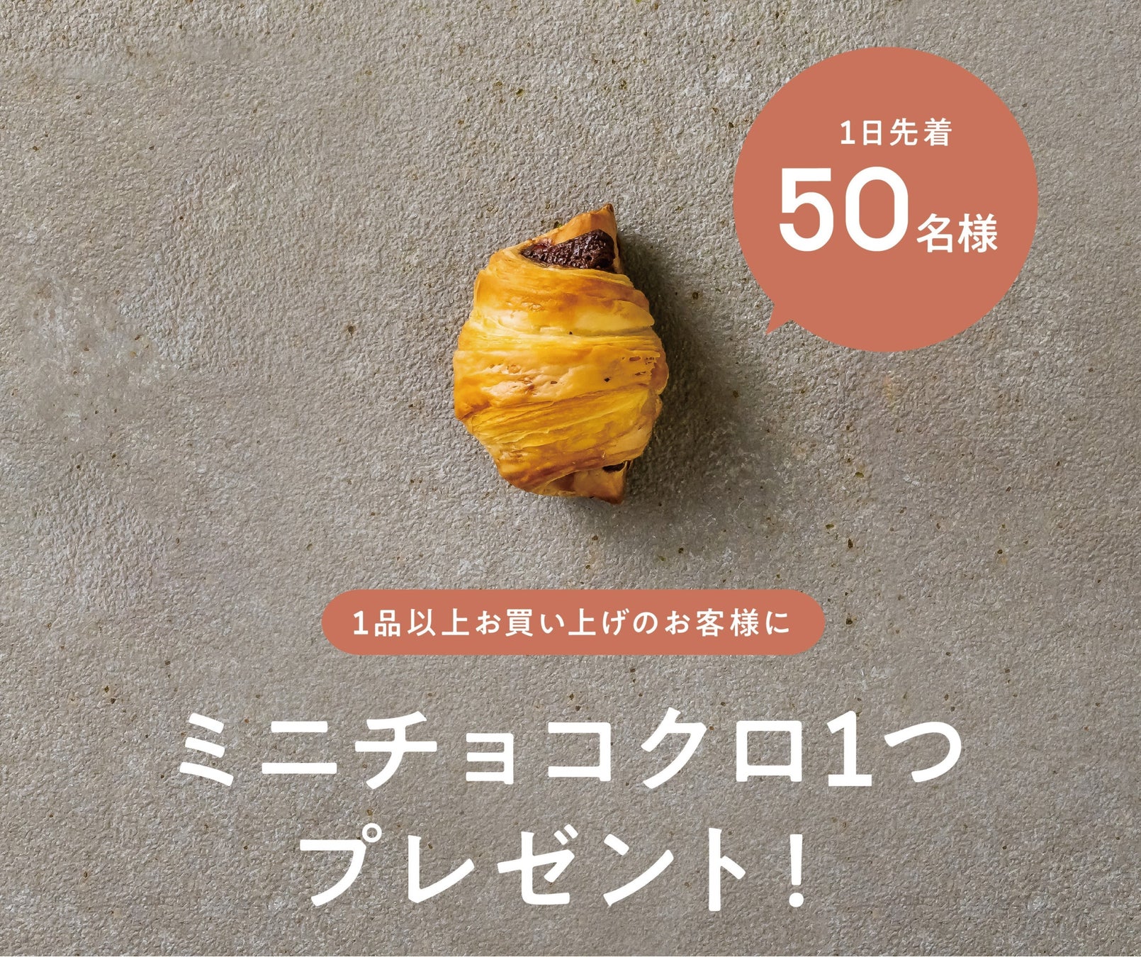 また、オープンを記念して、11/8(火)~11/13(日)の期間、各日1品以上お買い上げのお客様先着50名様限定で「ミニチョコクロ」をプレゼントいたします。