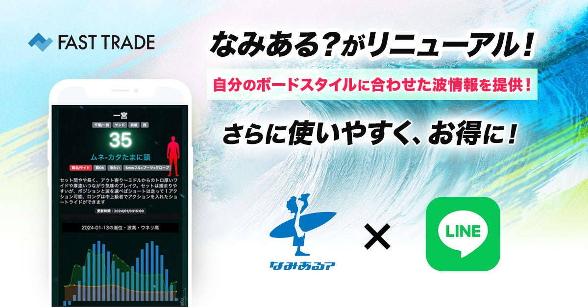 「なみある?」は1999年に日本第一号のモバイル波情報サイトとしてスタートした日本最大規模の有料会員を有する老舗サイトです。2023年5月にサイバード社よりファーストトレード社が事業譲受しました。