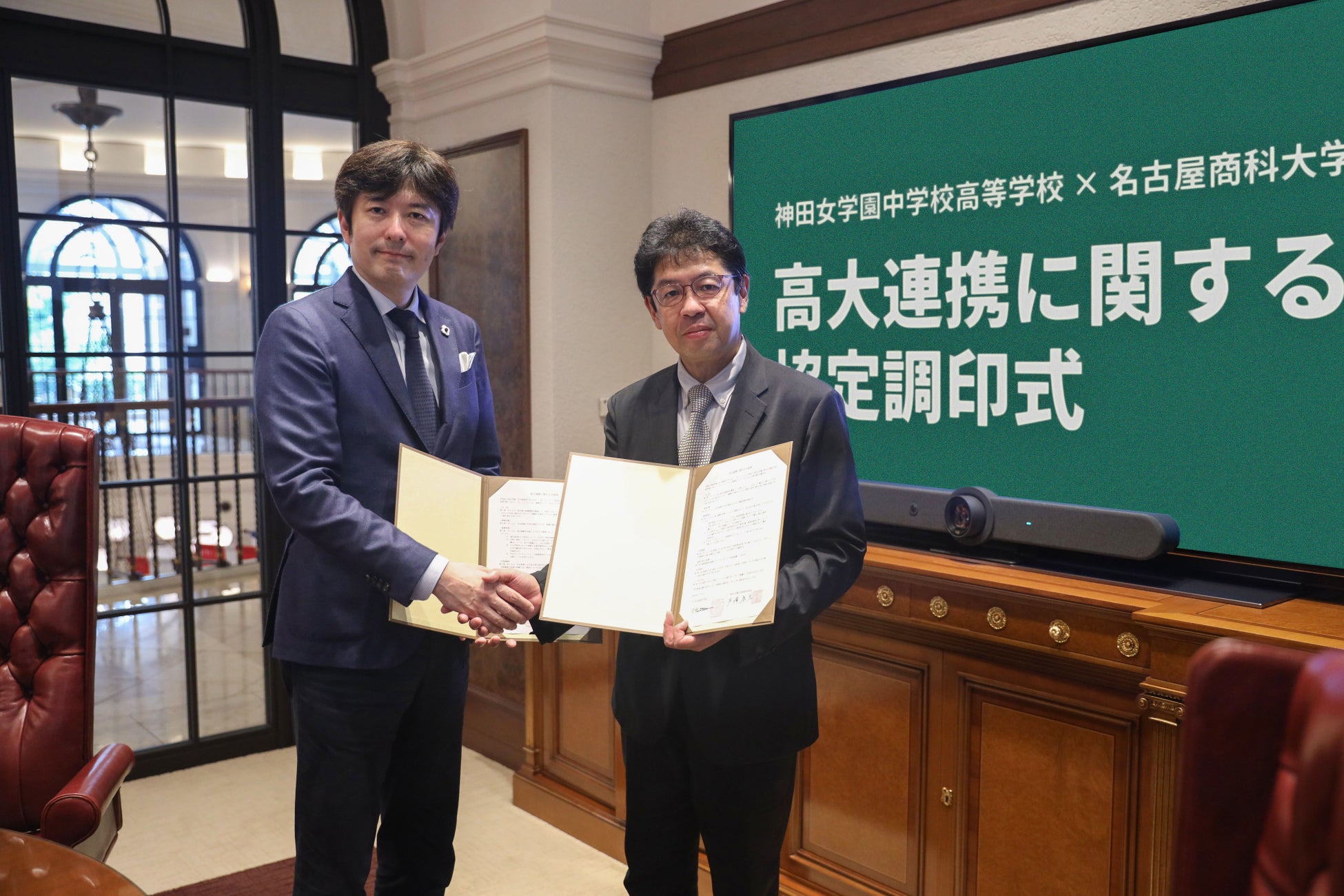 神田女学園中学校高等学校(校長:芦澤康宏)と名古屋商科大学(学長:栗本博行)は、7月8日(金)に標記の協定を締結しました。