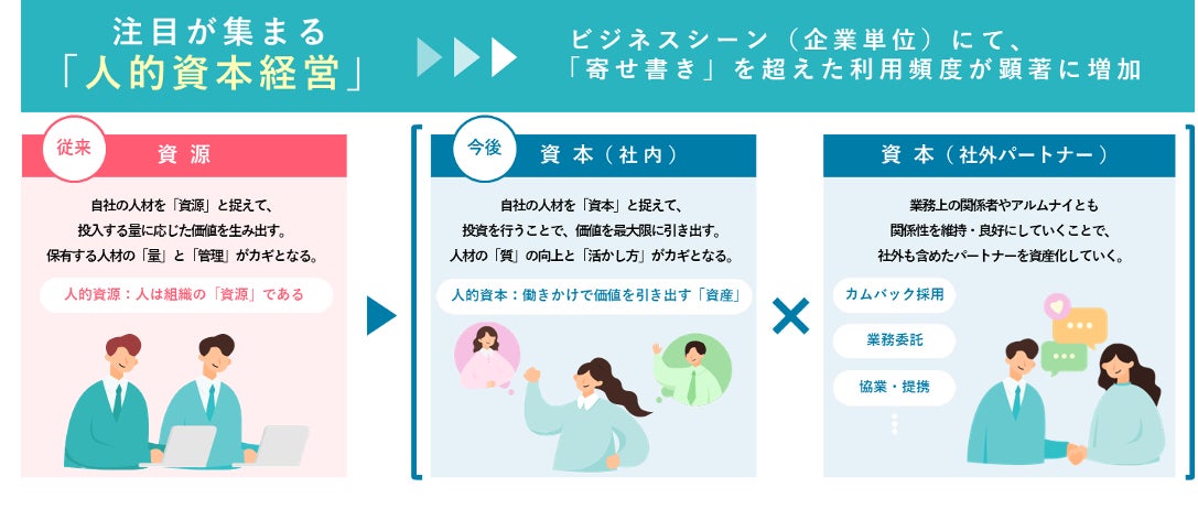 本サービスは当初より、利用者の半数以上がビジネスシーン(職場の送別・歓迎・お祝い事等)での利用となっておりました。そこで、ビジネス利用のユーザー様により便利に、社内コミュニケーションの機会に身近な存在としてご活用いただきたいとの想いのもと、法人プランの開発に至りました。社会的背景としても、昨今需要の高まる「人的資本経営※」において重要な指標となる「従業員エンゲージメント」を高める社内施策のひとつとして、「スゴヨセ」をご活用いただけると考えております。今後も利用シーンのご提案やサービス向上に努めてまいります。