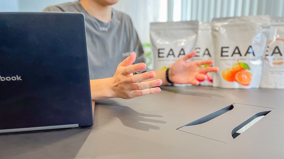 プロテイン個包装のプレスリリース(https://prtimes.jp/main/html/rd/p/000000021.000086328.html)でもお伝えしましたが、EAAの個包装タイプも現在開発中です。これまでEAAを摂取したことがない方にも気軽に試してもらいたいと考えています。