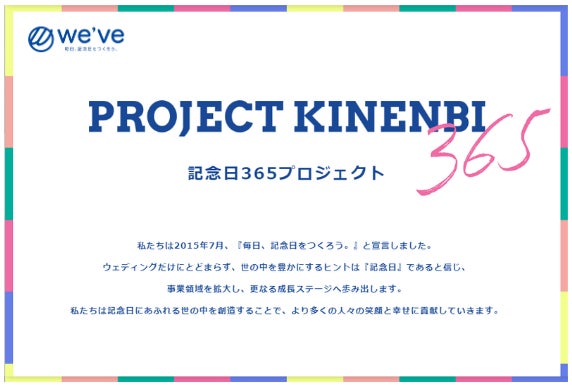 今後も「記念日365プロジェクト」を通じ、結婚式に限らず、さまざまなシーンで記念日を祝い、地域や企業と共に記念日文化の普及に努めていきます。