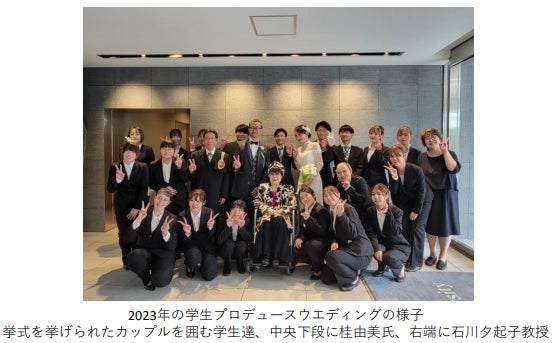 ブライダル業界で豊富な経験を持つ石川夕起子教授の指導のもと、学生たちはウエディングの意義や歴史を学び、一般公募で選ばれたカップルの結婚式を手作りで創り上げます。石川教授の指導により、学生たちは実務的なスキルと共に、地域に根ざしたウエディングの重要性も理解しています。