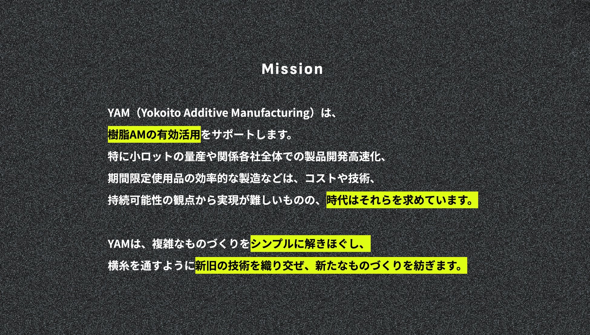 YAMが掲げるのは、「すべての製造現場にAMという選択肢を」届けることです。