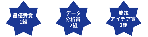 最優秀賞は1点、データ分析賞と施策アイデア賞はそれぞれ2点ずつ選出します。