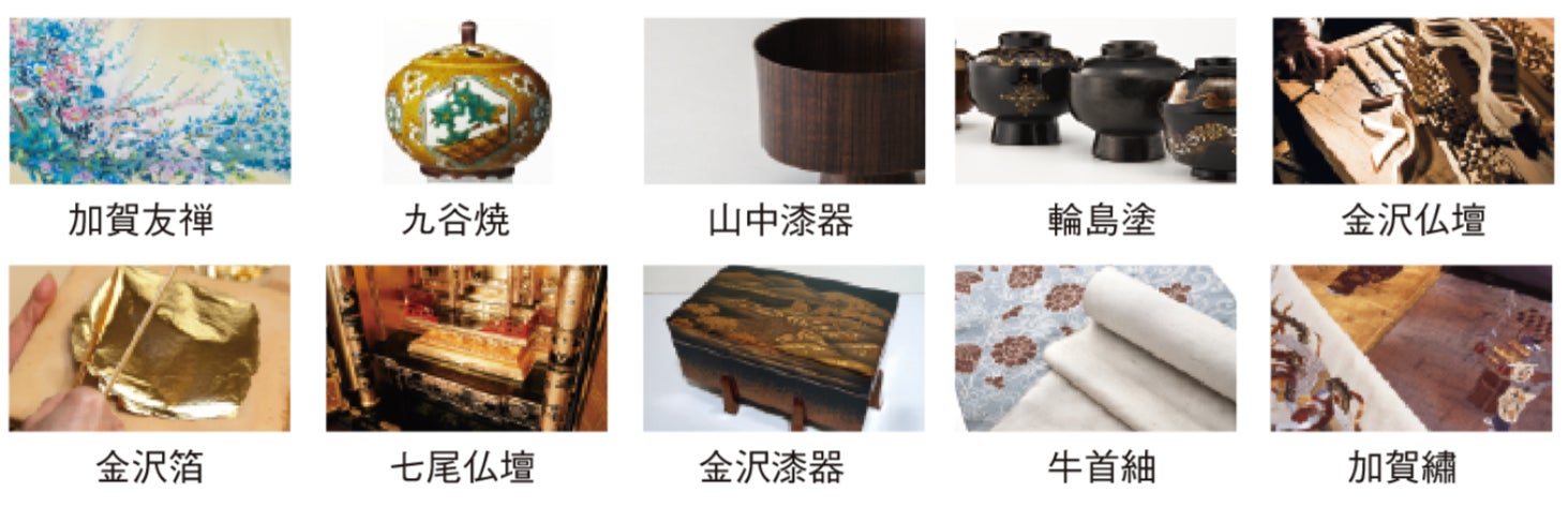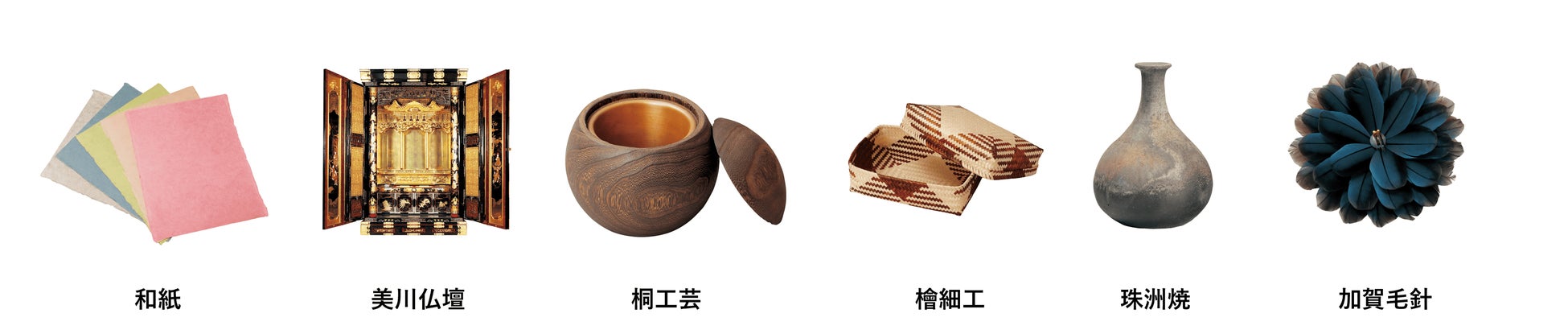 石川の経済産業大臣指定伝統的工芸品は全部で10品目。金粉と銀粉を用いた蒔絵等の表現で知られ、100を超える工程を経て世に出される輪島塗や、加賀五彩といわれる藍、黄土、草、古代紫、臙脂(えんじ)を基調とした加賀友禅など、世界に誇る石川の伝統的工芸品の製作体験や製作実演、展示・販売を行います。