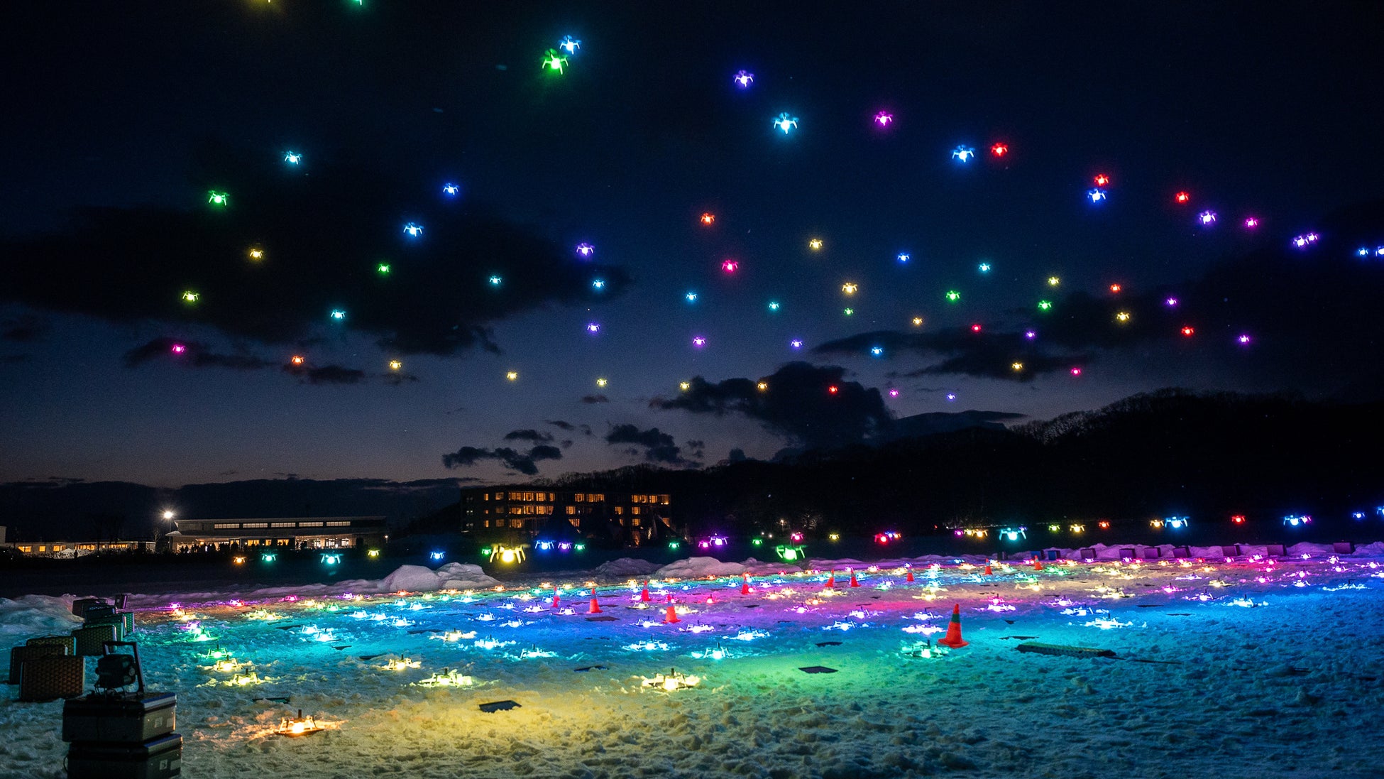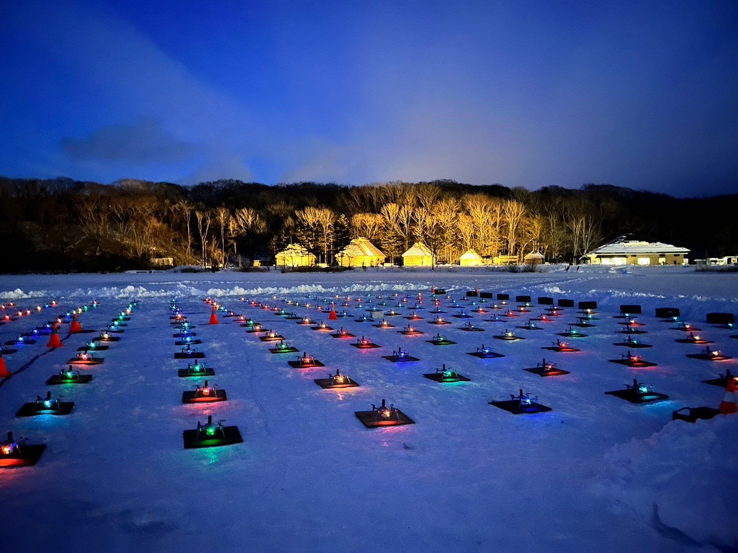厳しい条件の中、日本初※1となる氷結湖上ドローンショーを9日間無事に実施