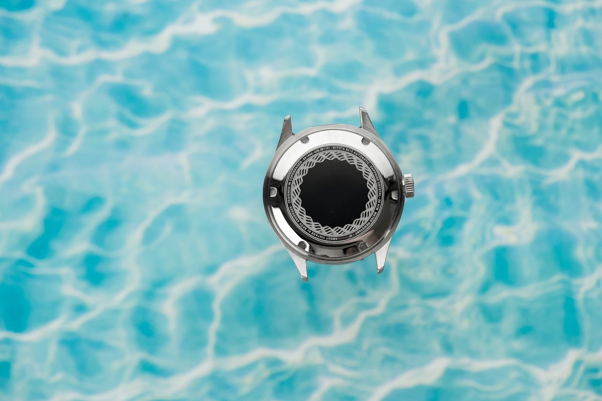 Caribbean Blueは、なめやかなウェーブ模様が施されたカリビアンブルー色の文字盤に、ブラックのセラミックベゼルが際立つデザインになっています。一度は行ってみたいカリブ海のカラーを普段のおしゃれのワンポイントに追加しませんか。