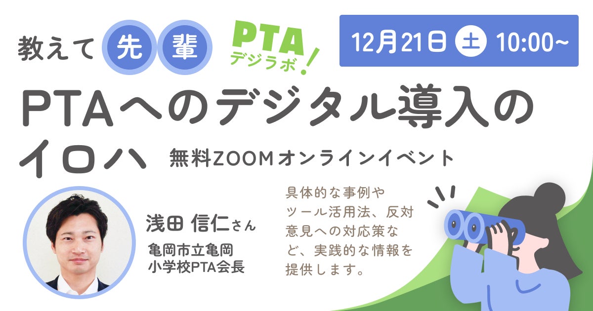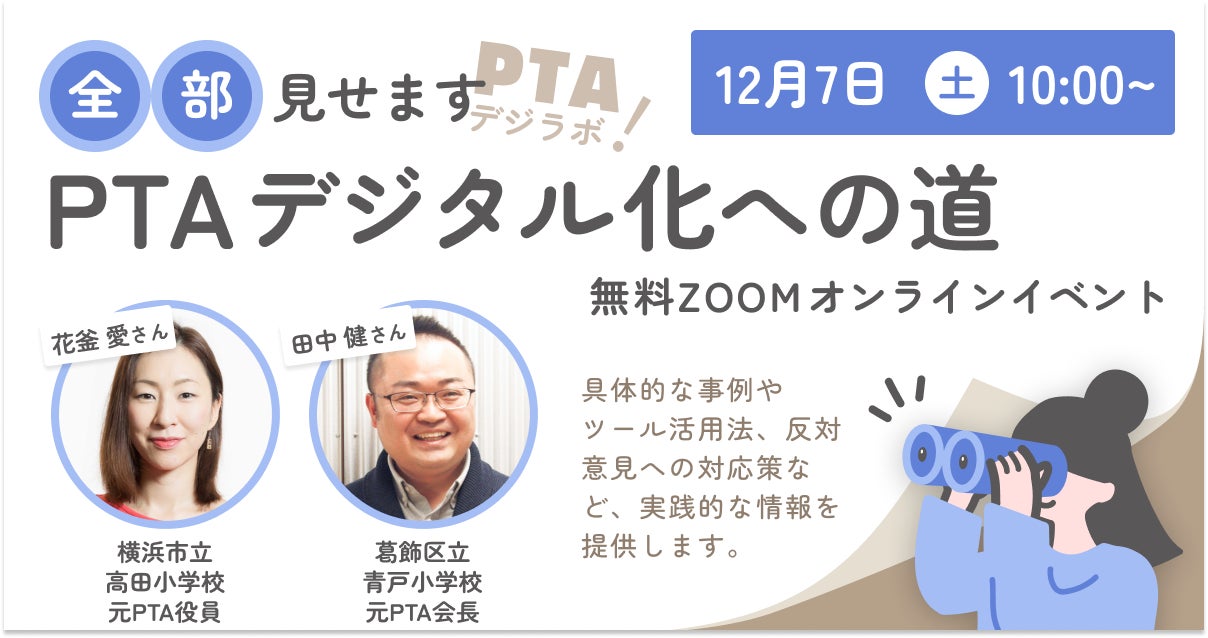 現役保護者中心にPTAのデジタル化を探究する「PTAデジラボ」始動。12月7日(土)、21日(土)に第一弾の企画をオンライン開催。