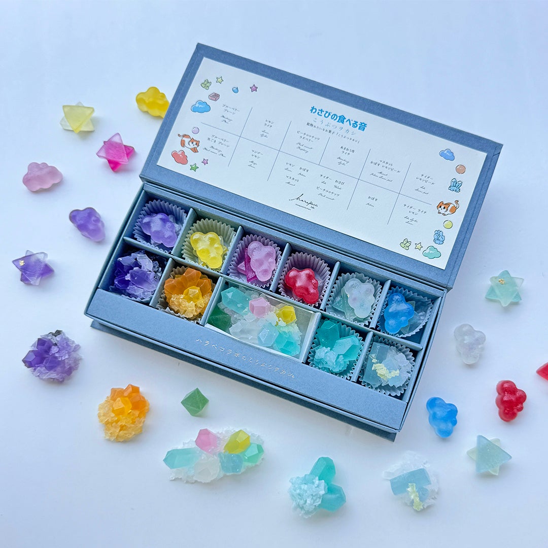 大人気ASMR Youtubeチャンネル「わさびの食べる音」のカラフルな世界観を表現したこうぶつヲカシのスペシャルコラボBOXの発売開始
