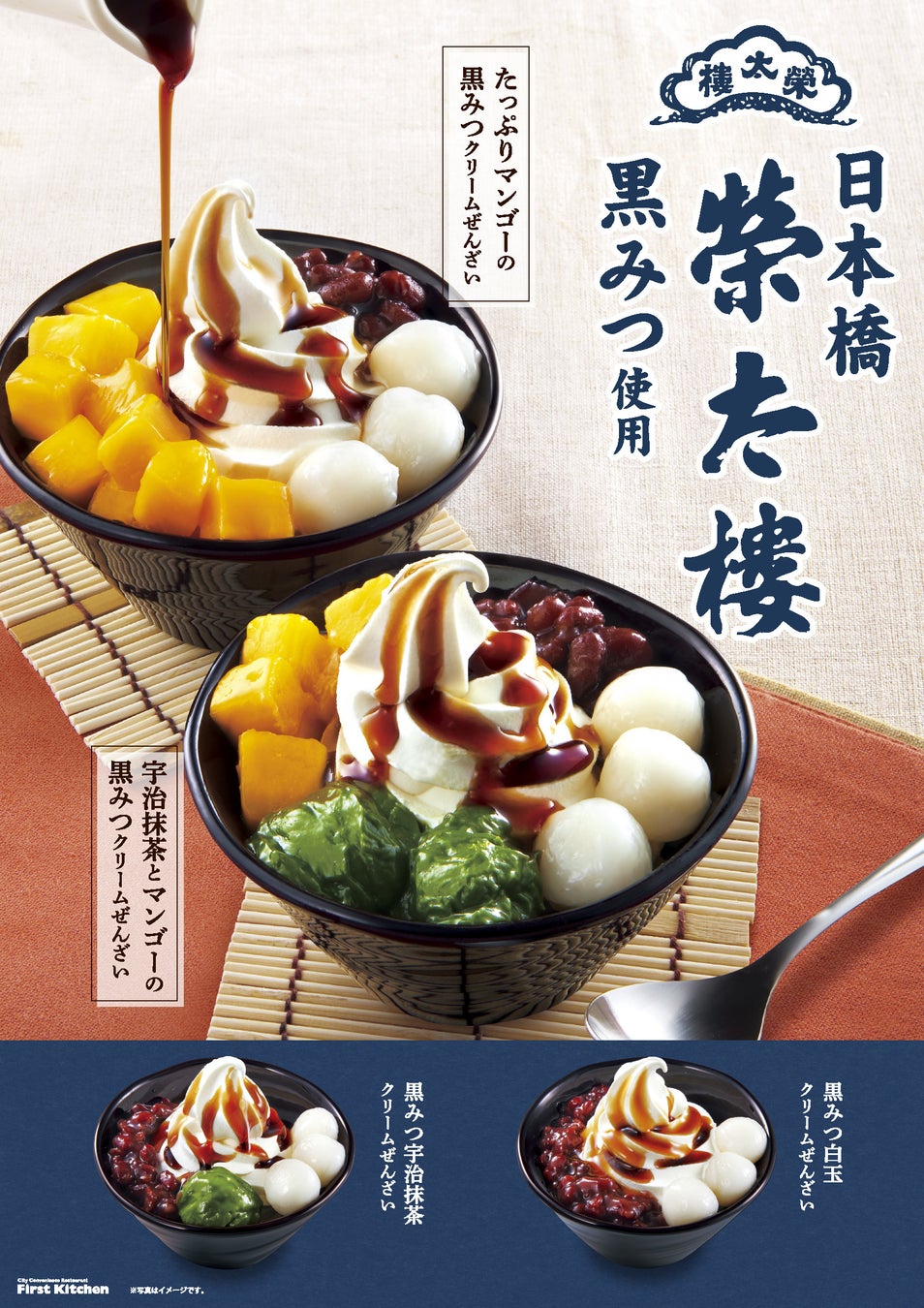 <ウェンディーズ・ファーストキッチン><ファーストキッチン>の白玉クリームぜんざいと榮太樓の黒みつを使用して期間限定コラボ発売。