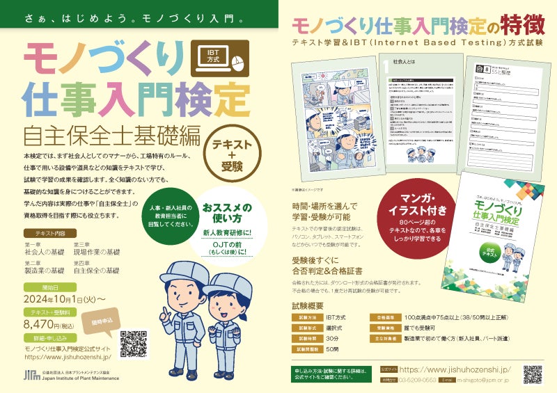 公益社団法人日本プラントメンテナンス協会は、2024年10月1日から製造業の新入社員向け学習&検定として「モノづくり仕事入門検定」のサービスを開始します。