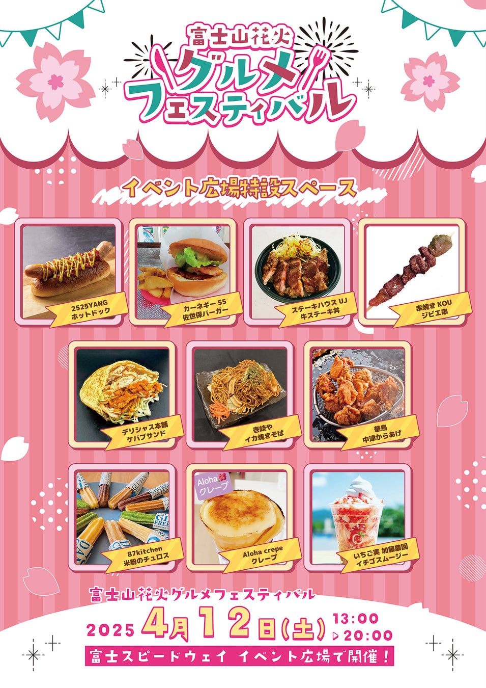 富士山をイメージした山盛りグルメが大集合し、富士山花火を盛り上げます!!