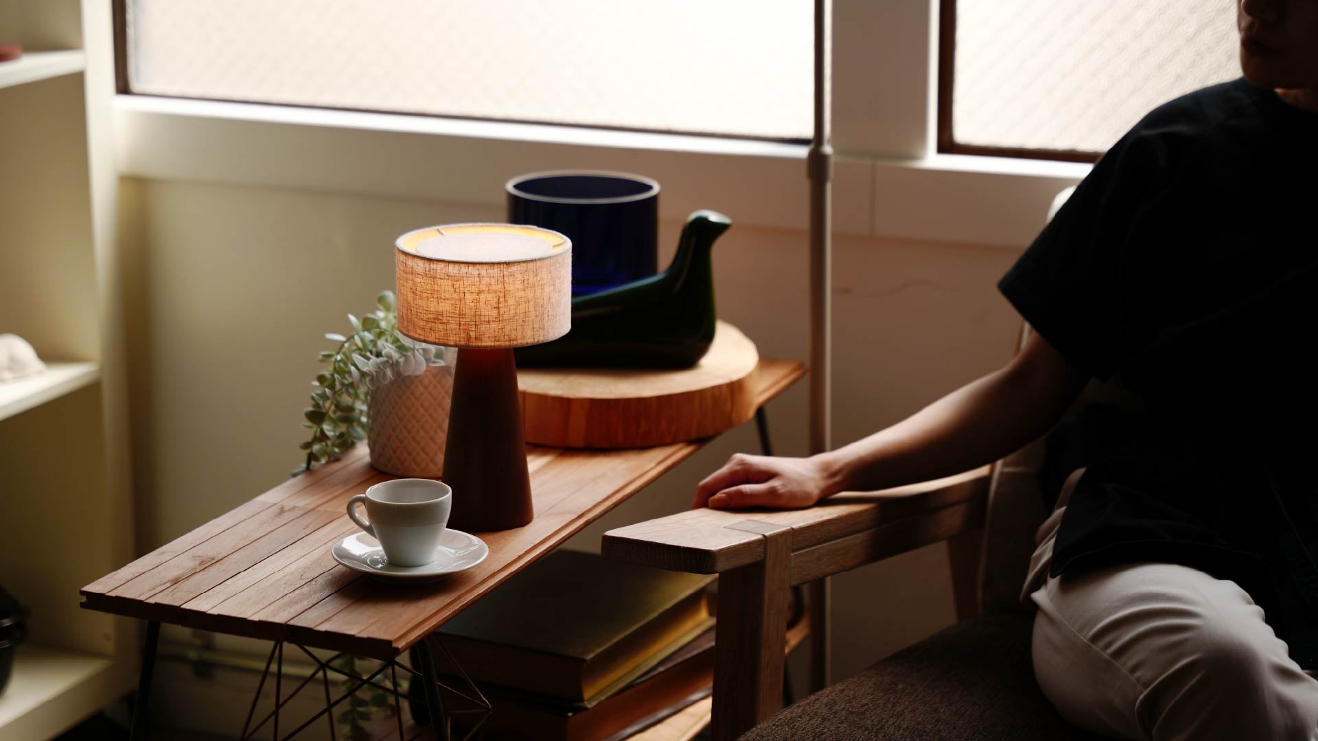 「暮らしのそばに、そっと寄り添うあかり」をテーマにデザインされた Wott。木のあたたかみと布シェードの柔らかな風合いをそのまま感じられるよう、素材選びから細部の設計までこだわりました。「就寝前の読書灯として」「リビングやダイニングでの晩酌タイムに」家じゅうどこへでも自由に移動して使える「持ち運べるあかり」です。