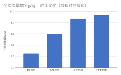 東京8の散布だけで、土壌の腐植を増やすことができています。