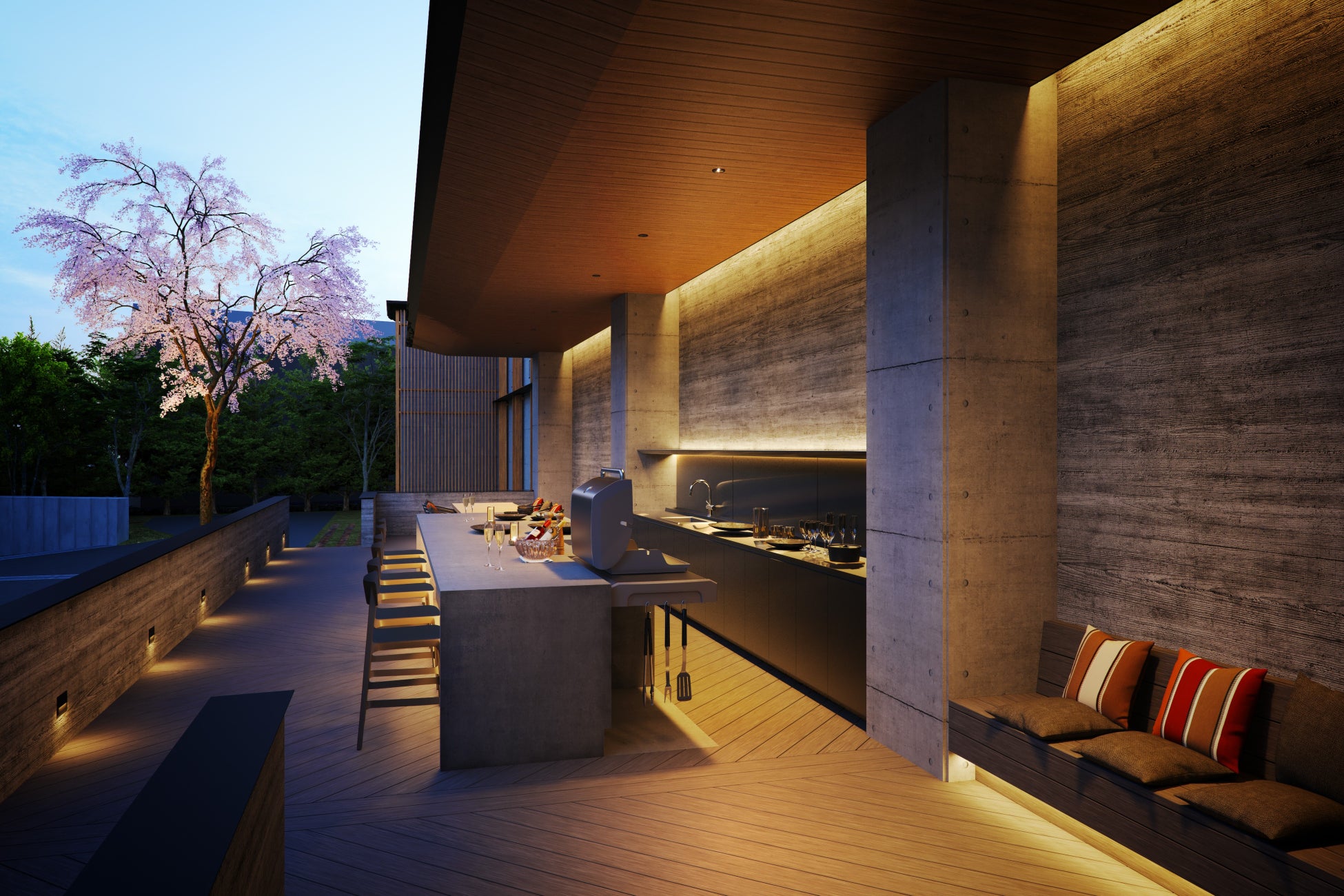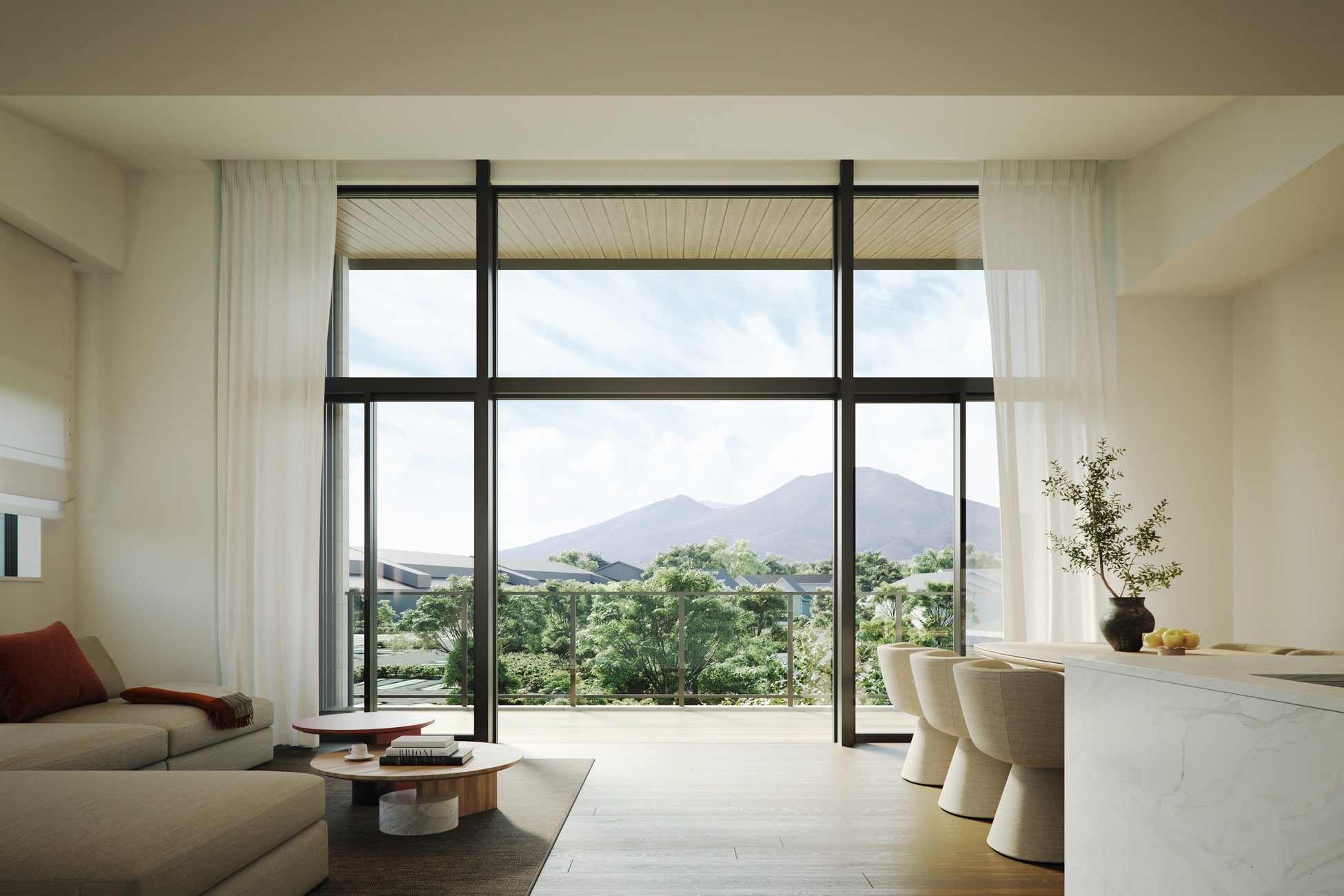 当物件は、季節によって美しく変化する光と影という日本特有の美意識「木漏れ日」と、ニュートラルなカラーパレット、天然の素材、ミニマムで美しいラインに現れる北欧の「静謐なデザイン」が融合した意匠を特徴としています。
