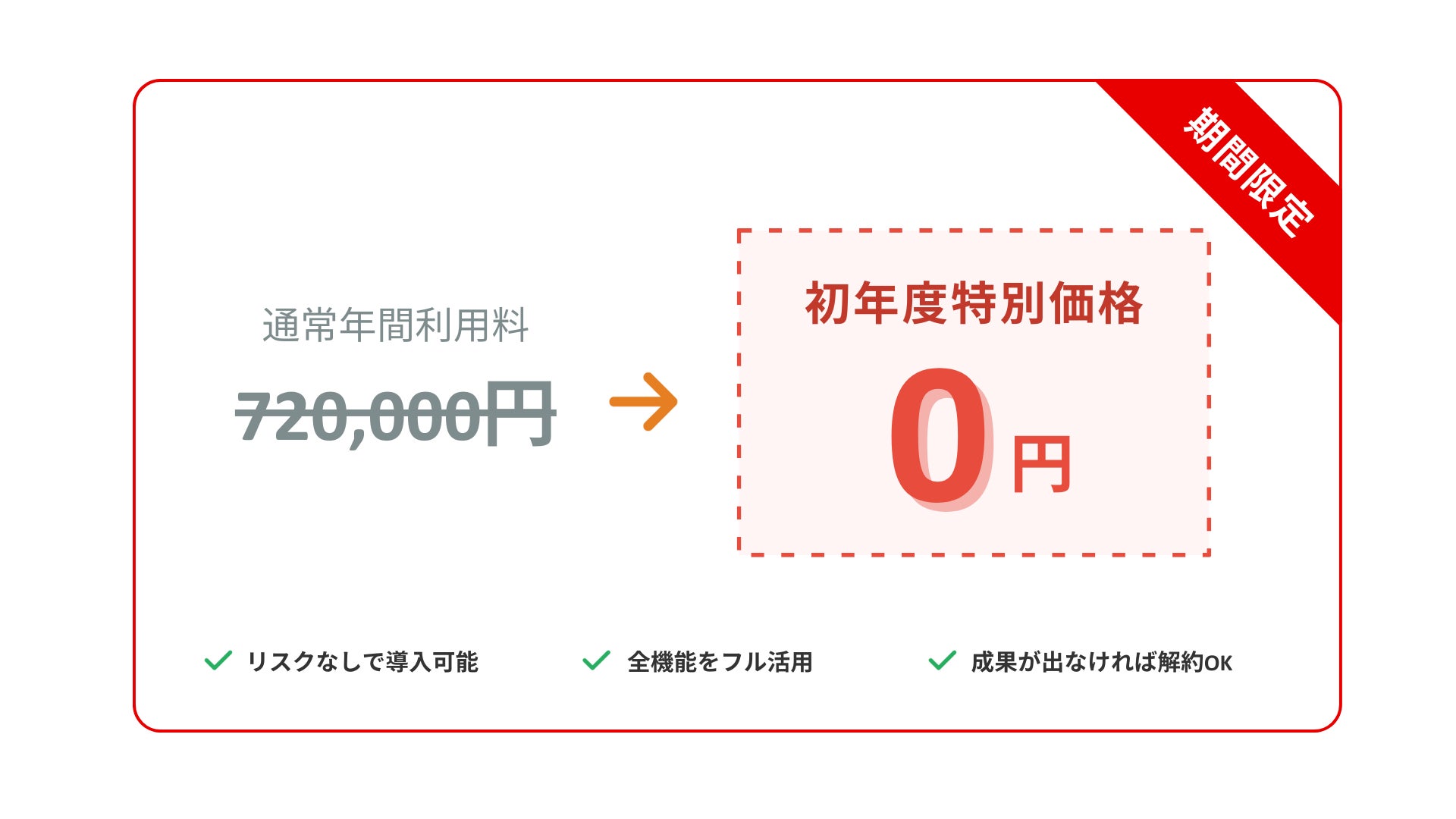 通常は月額6万円かかる機能ですが、期間限定で追加費用は一切かかりません。