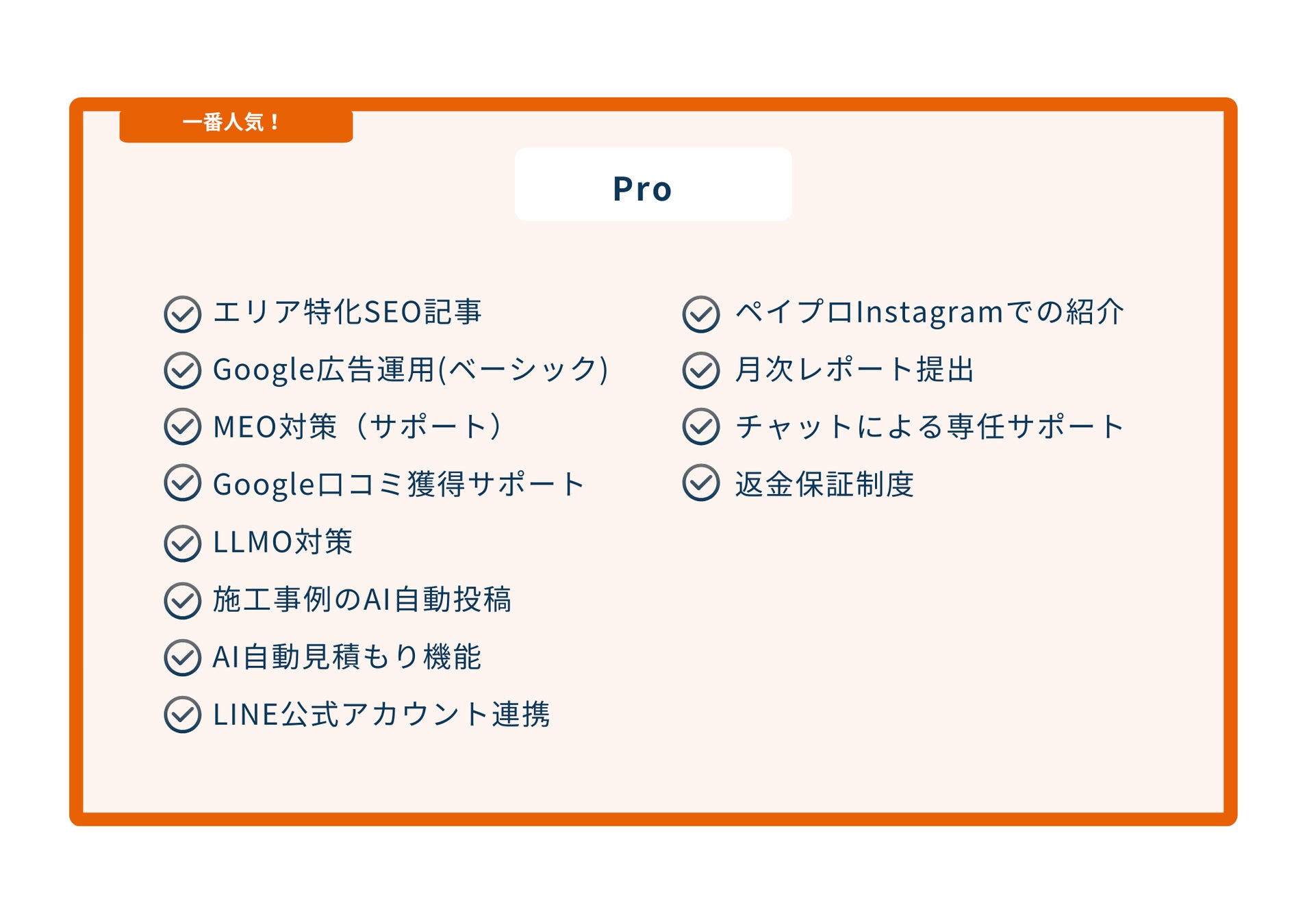 「これからWeb集客を始めたい」ライト層から、「ブランドを強化して地域No.1を目指す」上位層まで、ステージに応じて最適なプランを選べます。