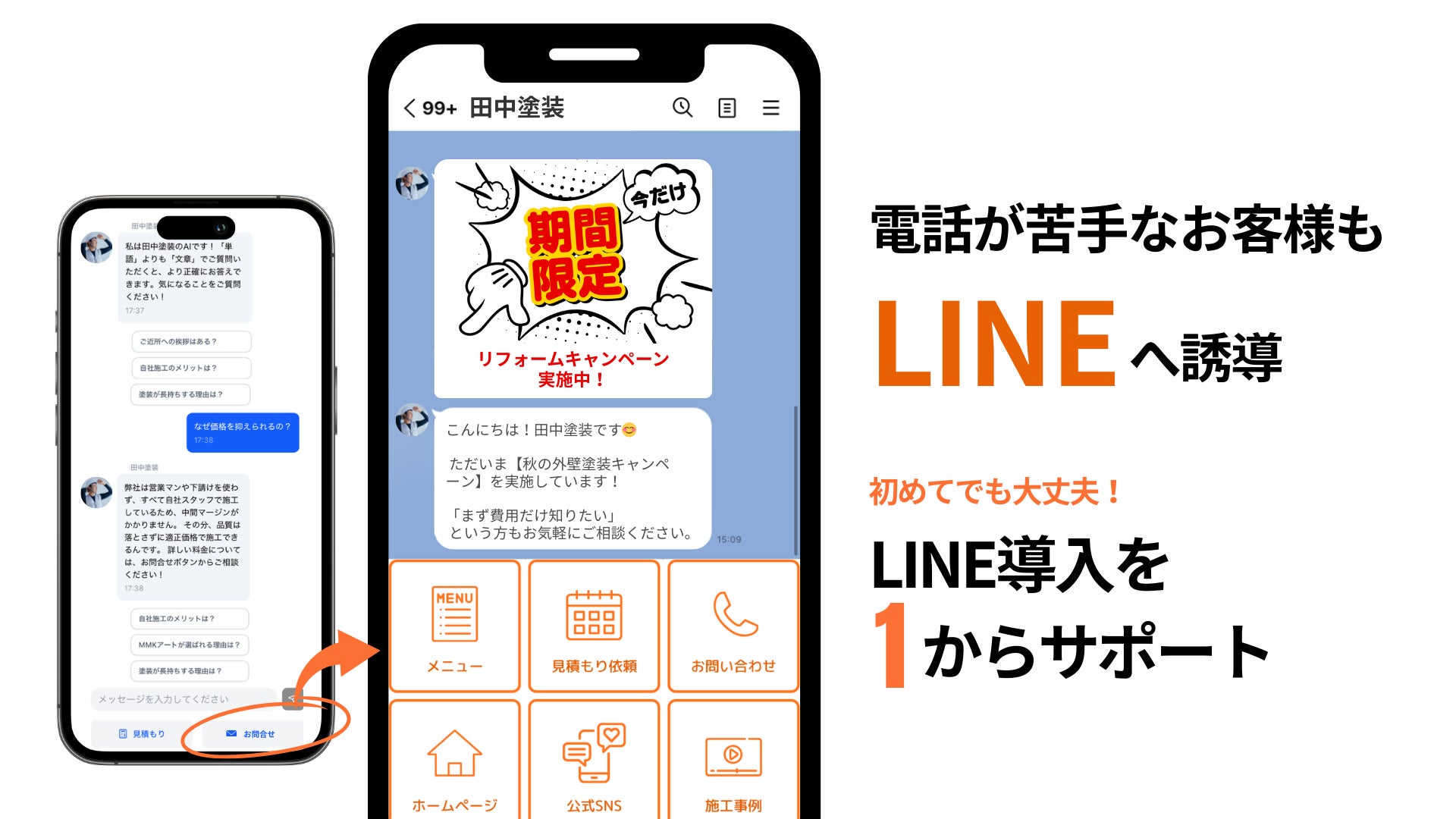 「電話はハードルが高い」と感じるお客様のために、使い慣れたLINEでの相談窓口を開設し、問い合わせのハードルを大きく下げます。