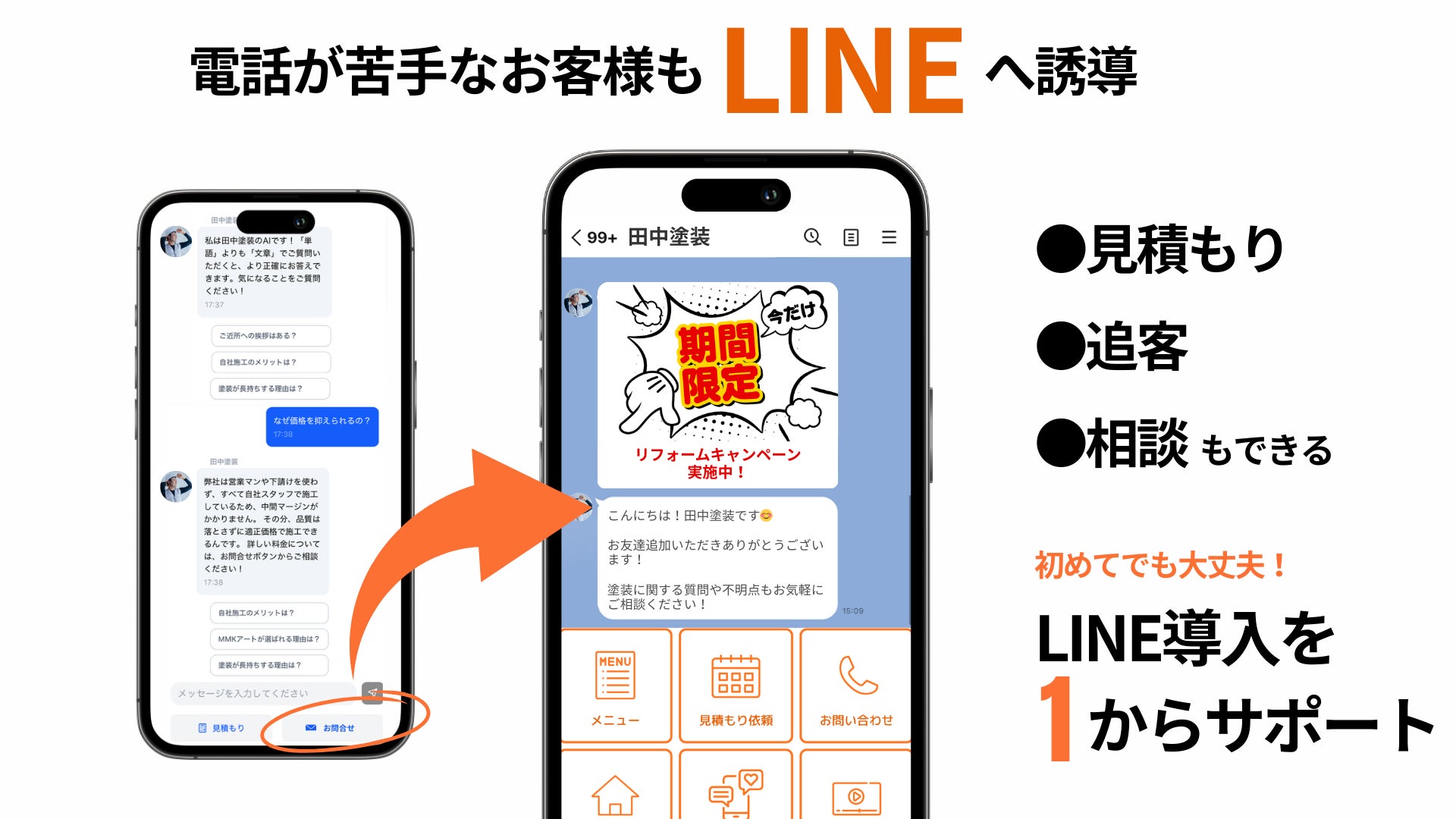 LINE相談や見積もりシミュレーションへ自動で誘導。