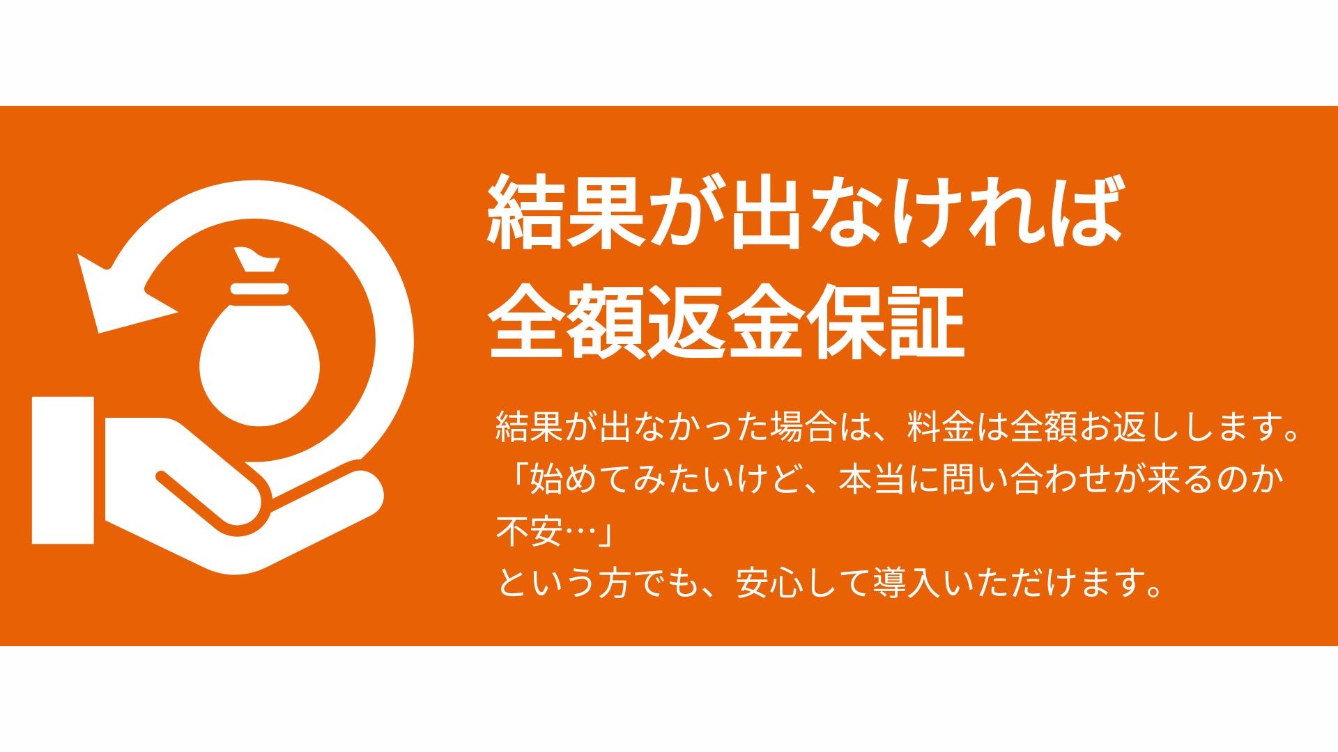 万が一、1年間サービスをご利用いただいて、結果が出なかった場合、いただいた費用は返金いたします。