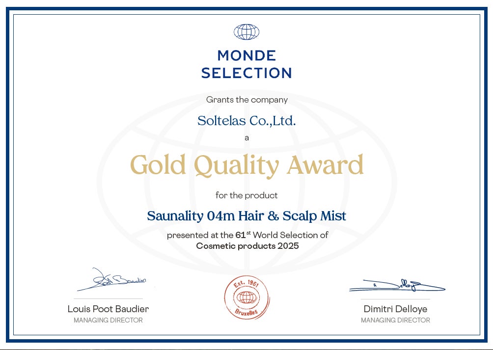 saunality 04m ヘアー&スカルプミスト<医薬部外品> が「モンドセレクション2025」金賞受賞!