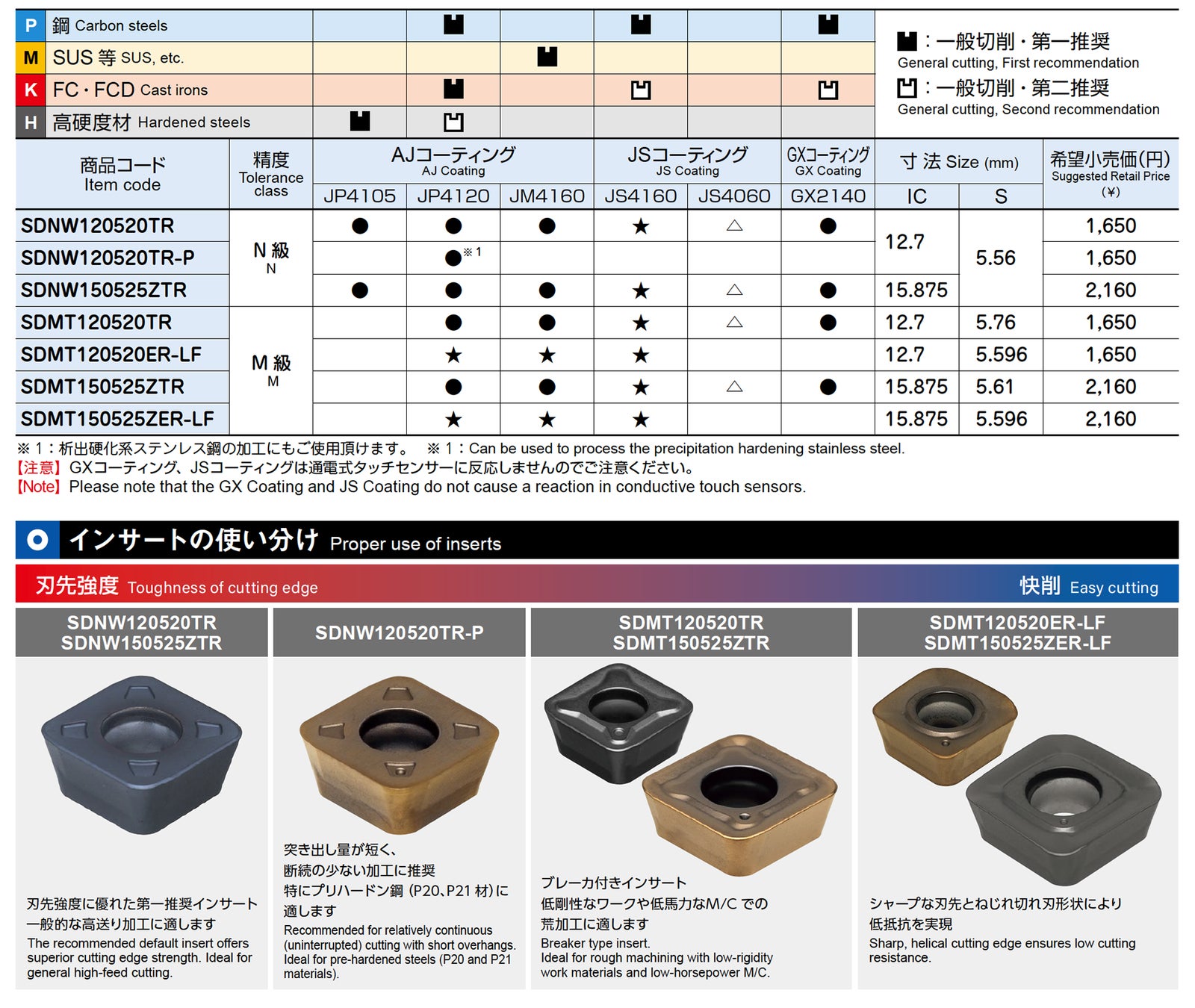 そこで弊社は、従来品よりも低抵抗な形状を持つ「LFブレーカ」付きインサートと、軟鋼や炭素鋼の切削に優れる新インサート材種JS4160を開発し、この度発売いたします。