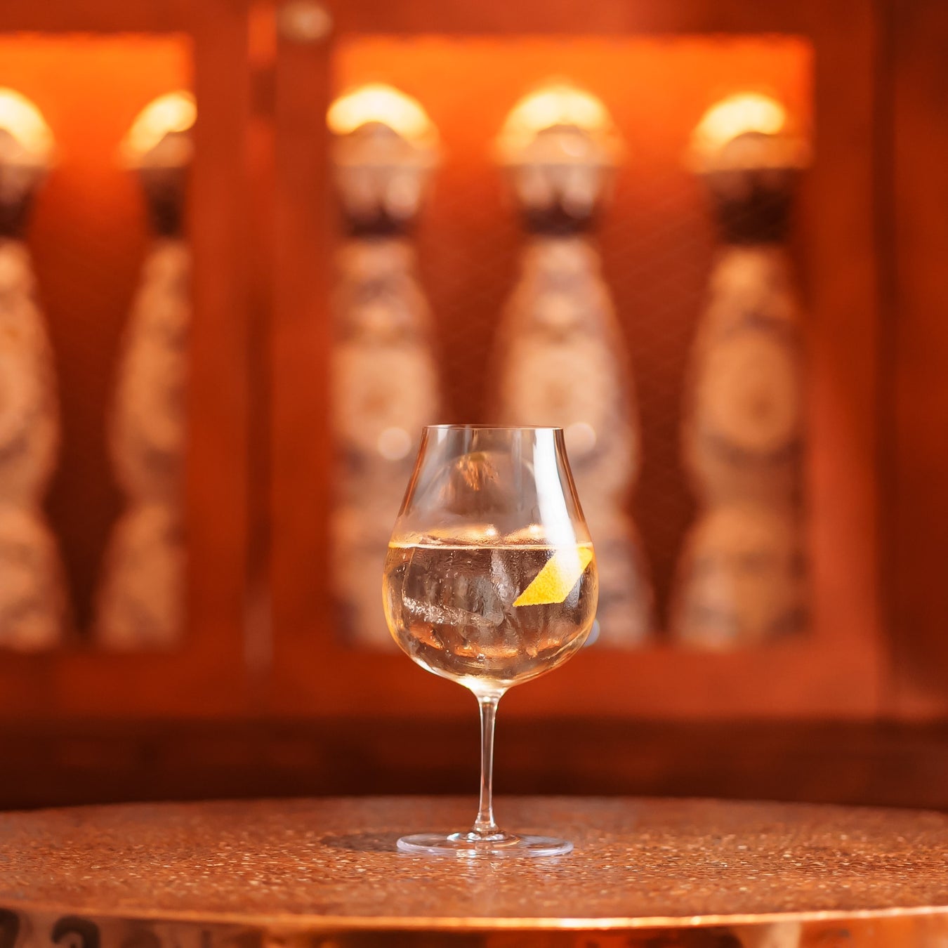 日本ではショットグラスのイメージが強いテキーラですが、実はテキーラもワインのように、使用するグラスによって味わいが大きく変化します。「クラセアスール・ハイボール・ジャーニー」でご用意したのはアイコニックなグラス『Nautilus(ノーチラス)』。SG Groupのファウンダー後閑信吾氏と、日本を代表するグラスデザイナーの木村祐太郎氏がタッグを組み生まれたグラスブランド『SIP AND GUZZLE』のNautilusシリーズは、ほどよい大きさや繊細な脚のつくりに加え、ボトムのふくらみ、飲み口のすぼまり具合を絶妙に設計。ソーダで広がるクラセアスールのアロマが口もとに運ぶ度に花開き、余韻を残します。