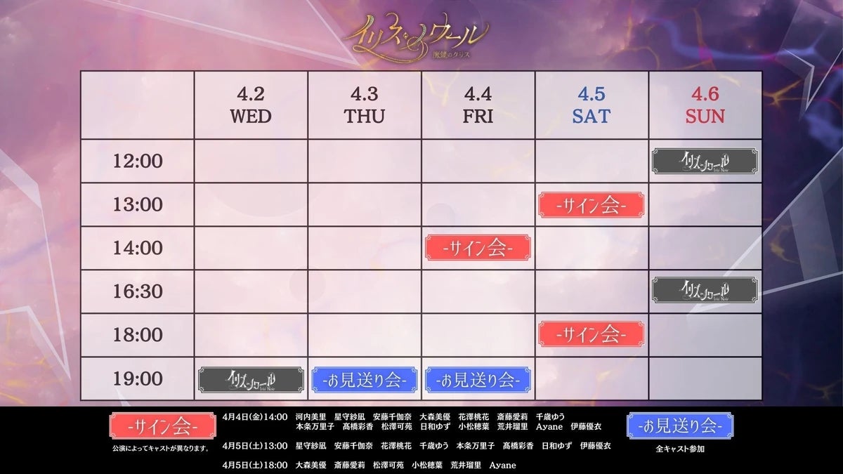※4月2日(水)/4月6日(日)は 終演後イベントはございません。