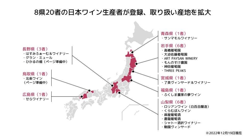 日本ワインの購入体験の価値向上へ。取り扱い産地の拡大により、日本ワインの多様性を発信。