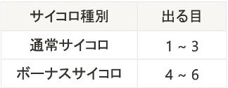 ・サイコロは通常サイコロとボーナスサイコロの2種類あり、出る目が異なります。