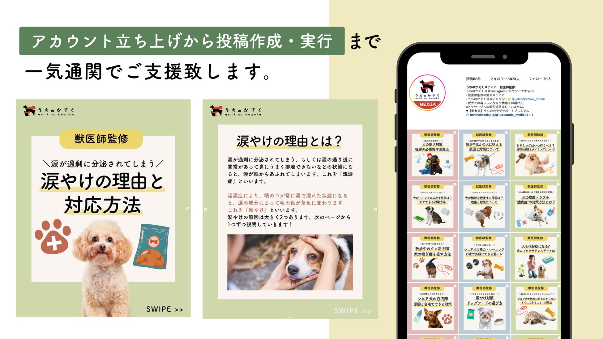 犬猫用のサプリメントという商材をプロモーションしていく上で、そもそもサプリメントという手段を知ってもらい、より多くのお客様に認知をしてもらうためにもSNS運用は必要不可欠だと考えていました。しかし、当時、社内でSNS運用を開始するとなった際に、SNS運用の知見が不足しているという課題がありました。また商材がペット向けの商材のため、ペットを飼っている方へきちんと情報が届けられるSNSアカウントを運用していきたいと考えていました。