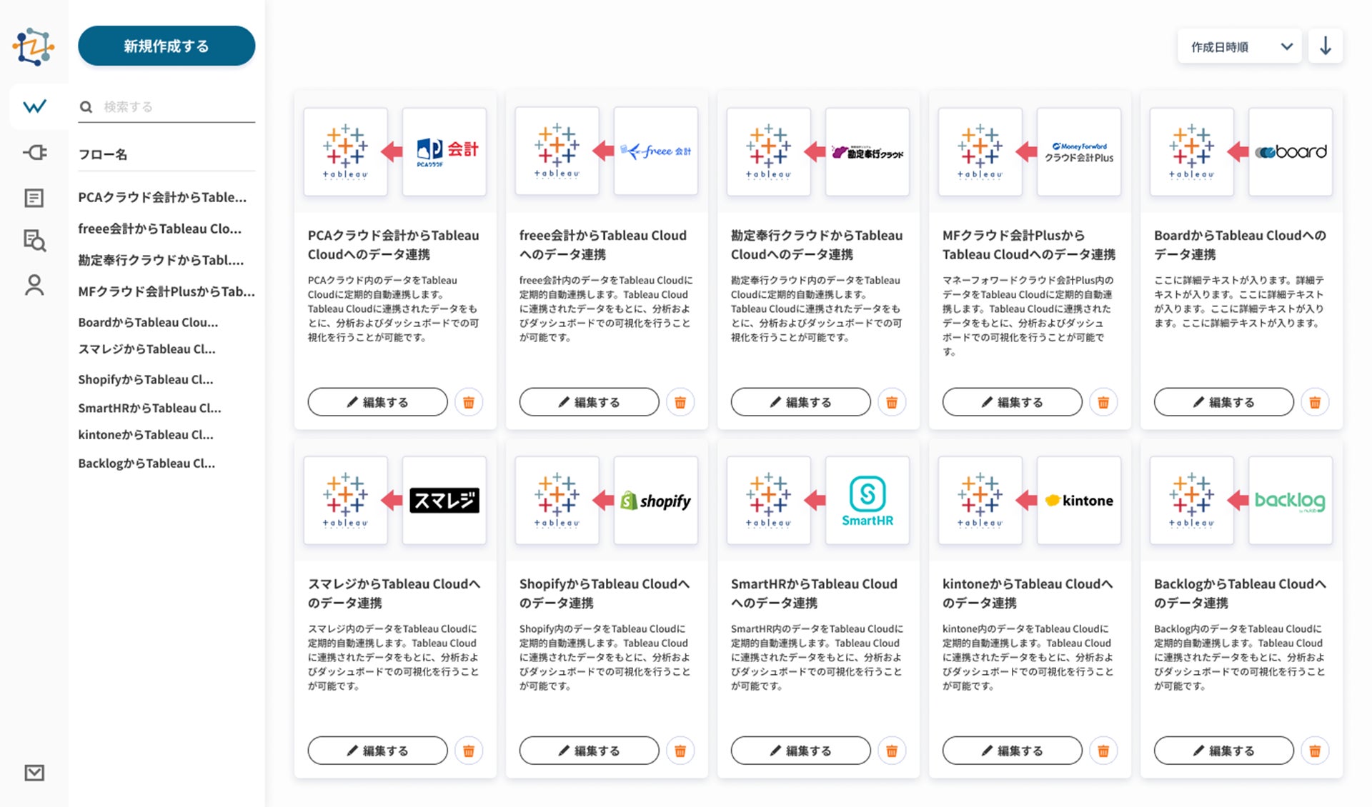 Any2Tabなら、freee会計やkintoneなどの日本製SaaS、さらには社内ネットワーク内の基幹システムデータまで、あらゆるデータソースをTableauで可視化可能に。従来は数時間から数日かかっていた連携作業も、最短3分で完了します。複雑な設定や専門知識は一切不要で、直感的な画面操作だけでTableauへのデータ連携環境を構築できます。