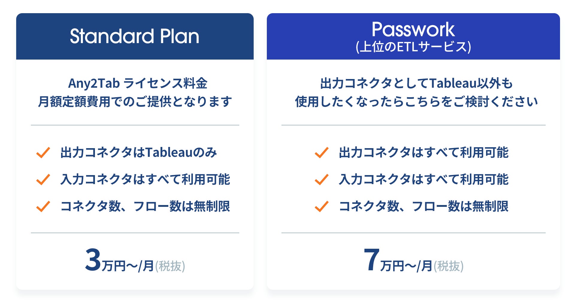 Passwork(上位のETLサービス):月額7万円〜(税抜)