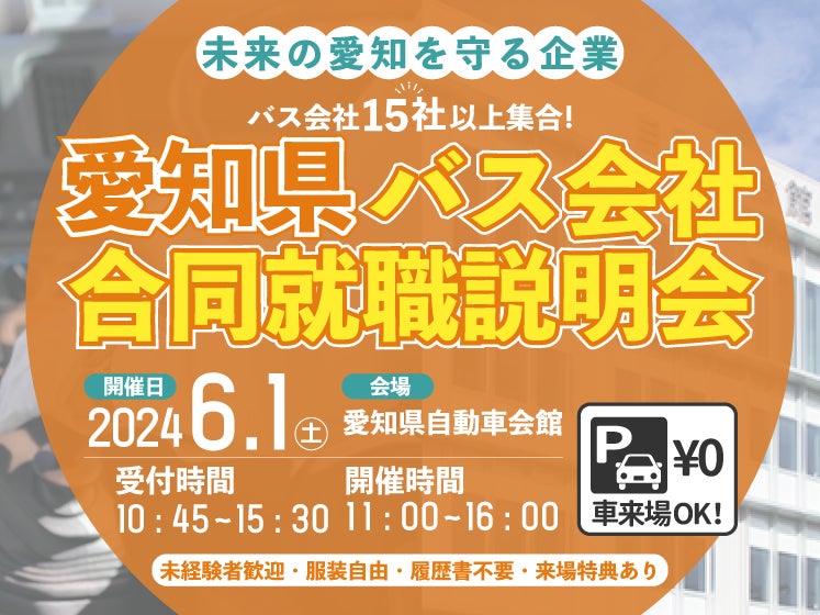 中部地方のバス会社が多数参画!バス運転手専門の就職イベント『愛知県バス会社合同就職説明会』を6/1(土)愛知県自動車会館で開催!