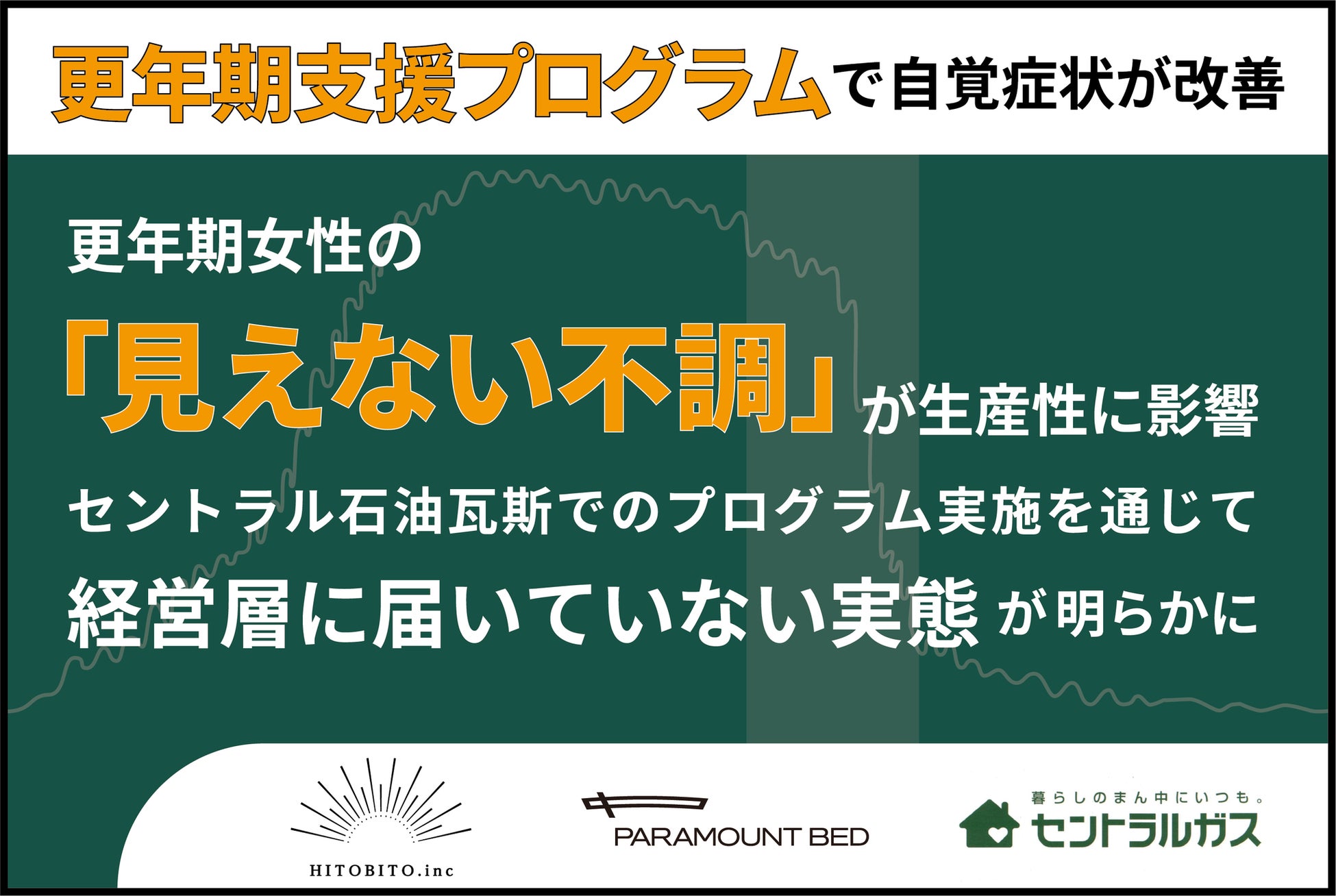 女性のデリケートゾーントータルケアブランド『明日 わたしは柿の木にのぼる』を企画・運営する、株式会社陽と人(ヨミ:ひとびと、本社:福島県伊達郡国見町、代表取締役:小林味愛、以下陽と人)と、パラマウントベッド株式会社(本社:東京都江東区、代表取締役社長:木村友彦、以下パラマウントベッド)は、更年期世代の女性従業員を対象とした『DE&I対応型ヘルスリテラシー研修と更年期当事者の不調改善伴走支援プログラム』を共同開発し、セントラル石油瓦斯株式会社(本社:東京都中央区、代表取締役社長:太田晃、以下セントラルガス)にて実施いたしました。