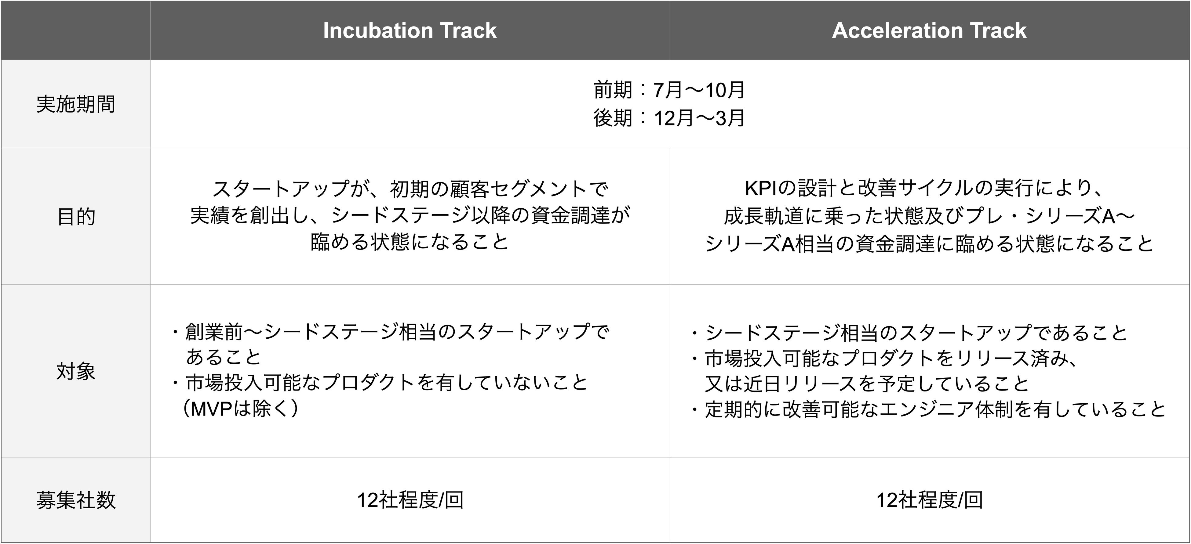 ・KPIを含む、事業に関わる数値の共有が可能なこと(Acceleration Trackのみ)。