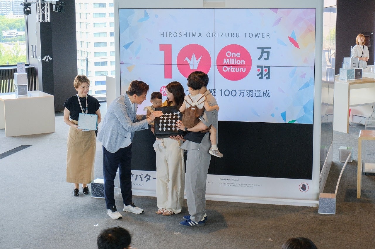 おりづるタワー(株式会社広島マツダ、所在地:広島市中区大手町1-2-1、代表取締役社長:山根一郎)では、2016年のオープン以降、ご来館されたお客様の折り鶴によって積み重なってきた「おりづるの壁」が100万羽を達成。達成を記念した、100万羽目のお客様を対象にセレモニー及び記者発表を実施いたしました。