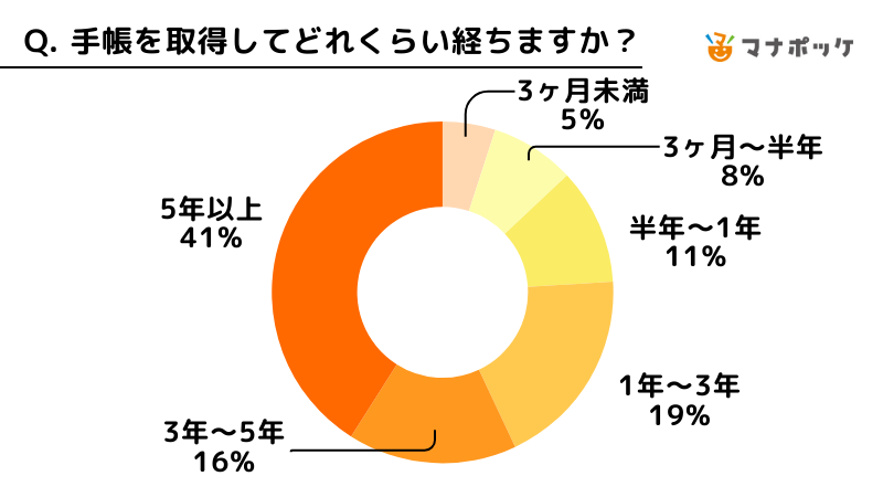 41%の方が、障害者手帳を取得してから「5年以上」経過していると答えました。