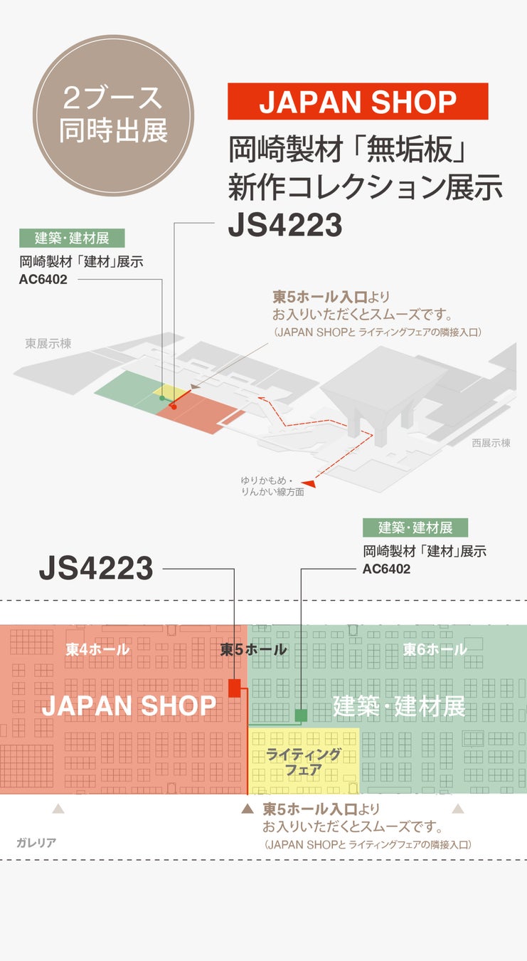 また、東京ビッグサイトで同時開催される「建築・建材展」でも、同社がデザイン・製造するドアやフローリングなど建材を展示する「2ブース同時出展」となる。