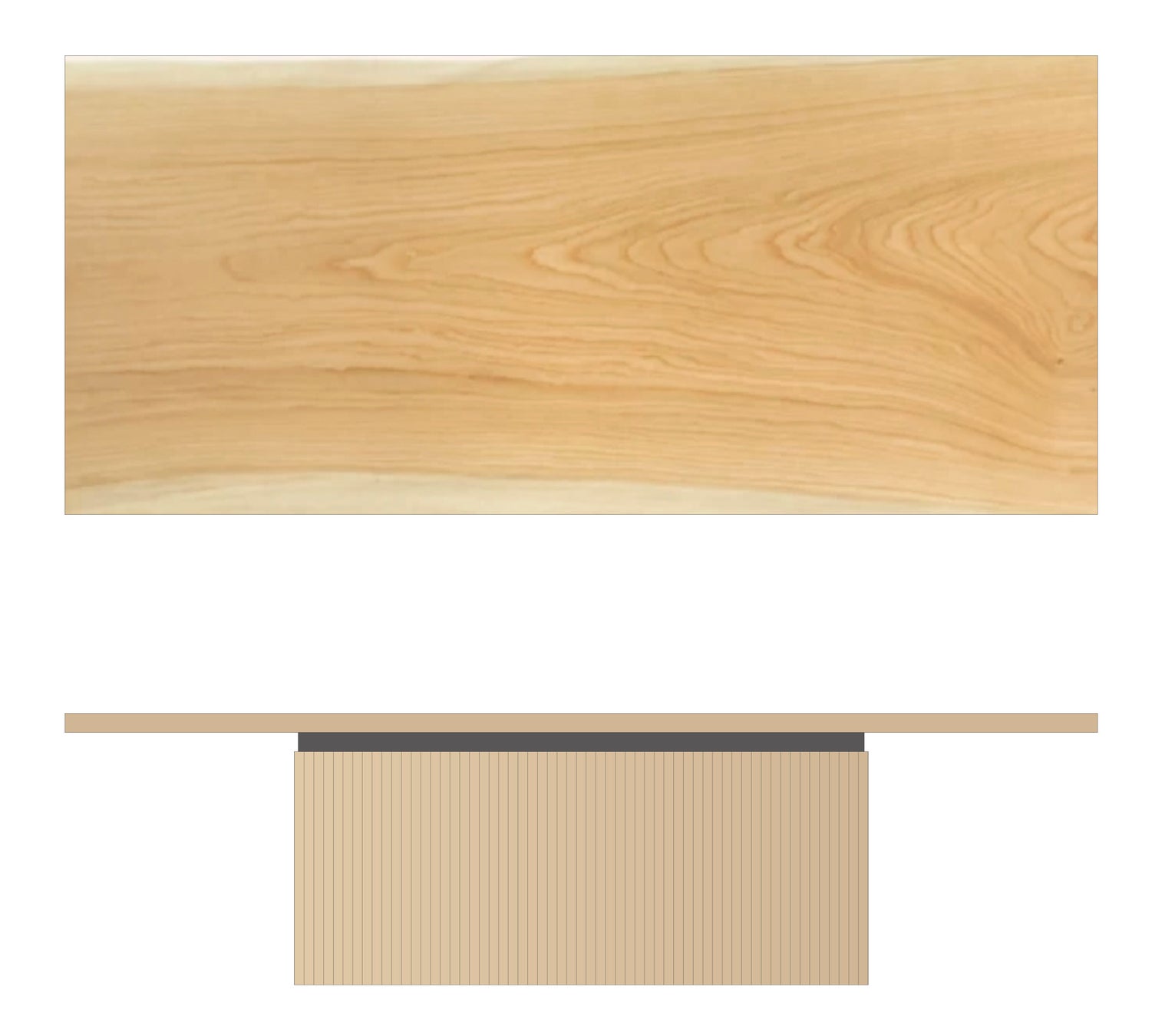 ホワイトオーク無垢材とリブボックス脚の組み合わせ。