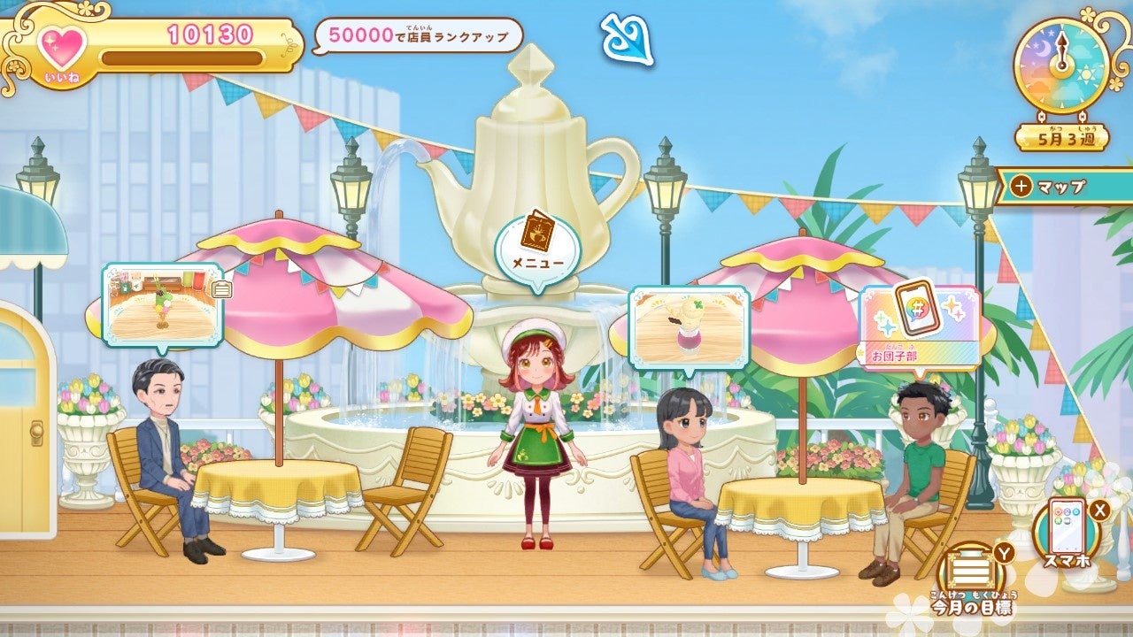 お店の知名度が上がると大人気のインフルエンサーが来店したり、主人公のファンが増えたりすることも。お店と一緒に主人公も有名になるサクセスストーリーを体験しよう!
