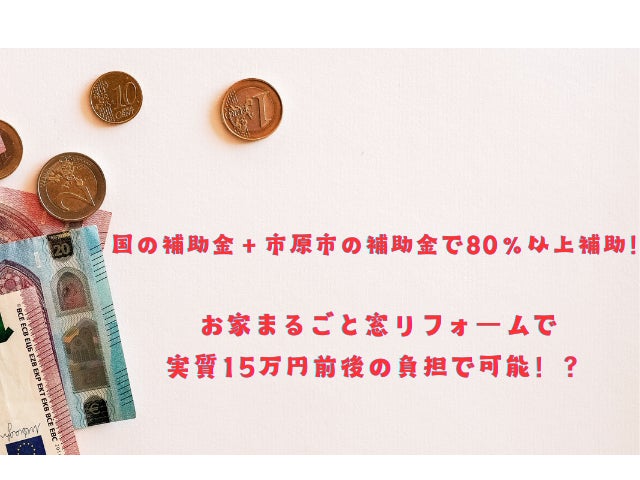 市原市の皆様、今が断熱・防犯リフォームを行う絶好のタイミングです。国と市の補助金を併用することで、通常のリフォーム費用の80%以上を補助金でカバーすることが可能です。これは、リフォーム費用が100万円かかる場合でも、自己負担がわずか20万円で済むことを意味します。